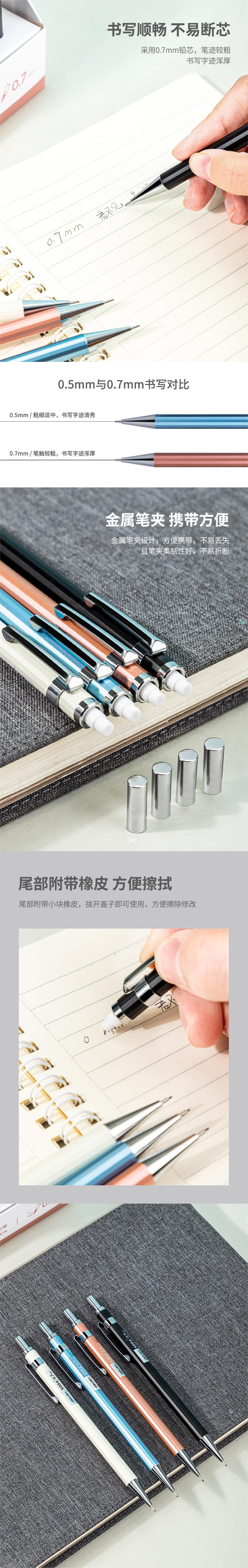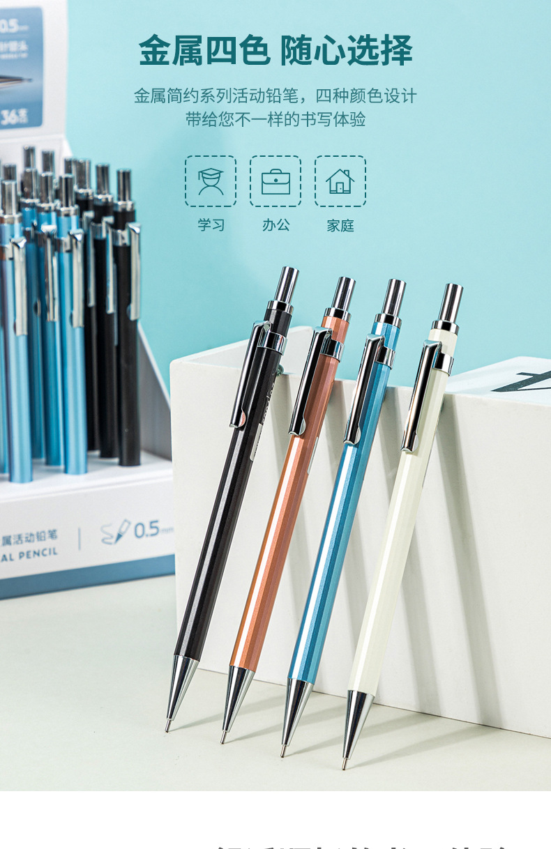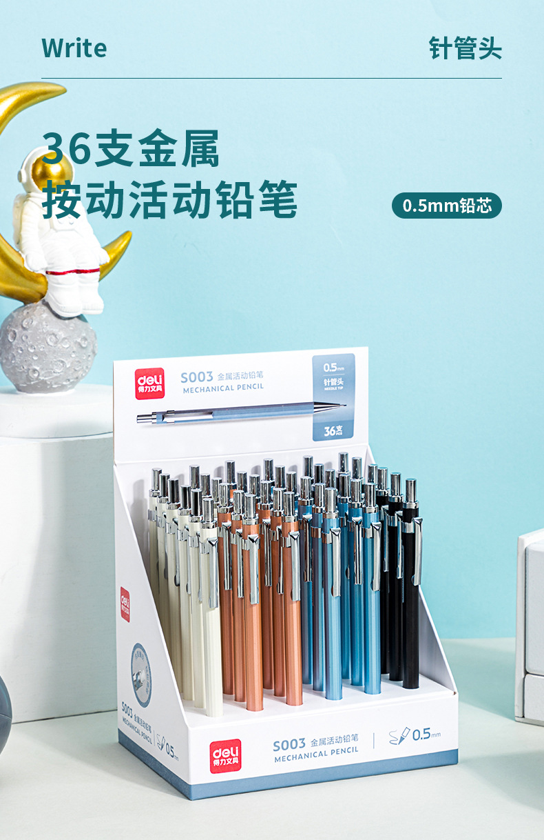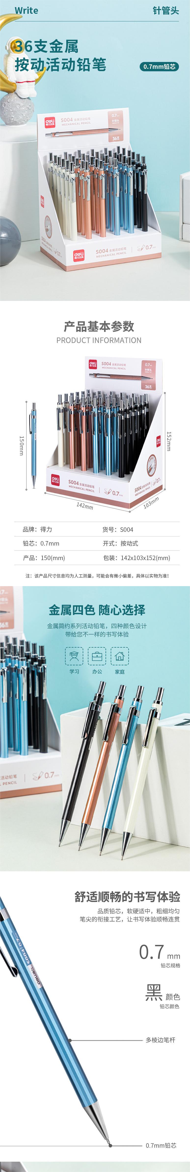 델리 S004 학생 활동 연필 금속 기계 연필 쓰기 그림 연필 0.7mm/0.5mm스토어 가기