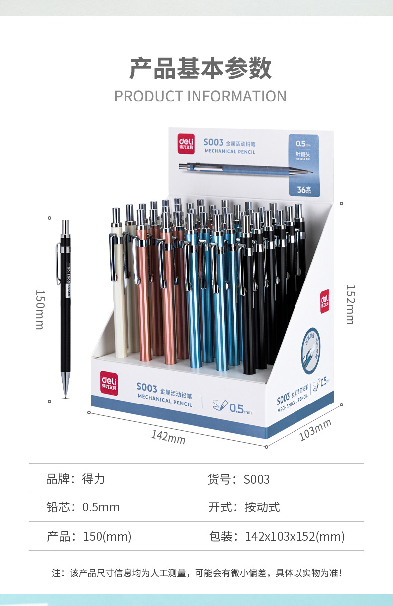 델리 S004 학생 활동 연필 금속 기계 연필 쓰기 그림 연필 0.7mm/0.5mm
