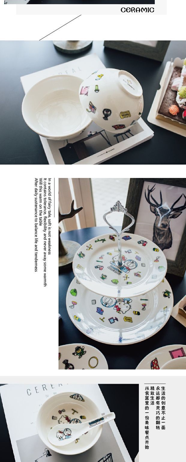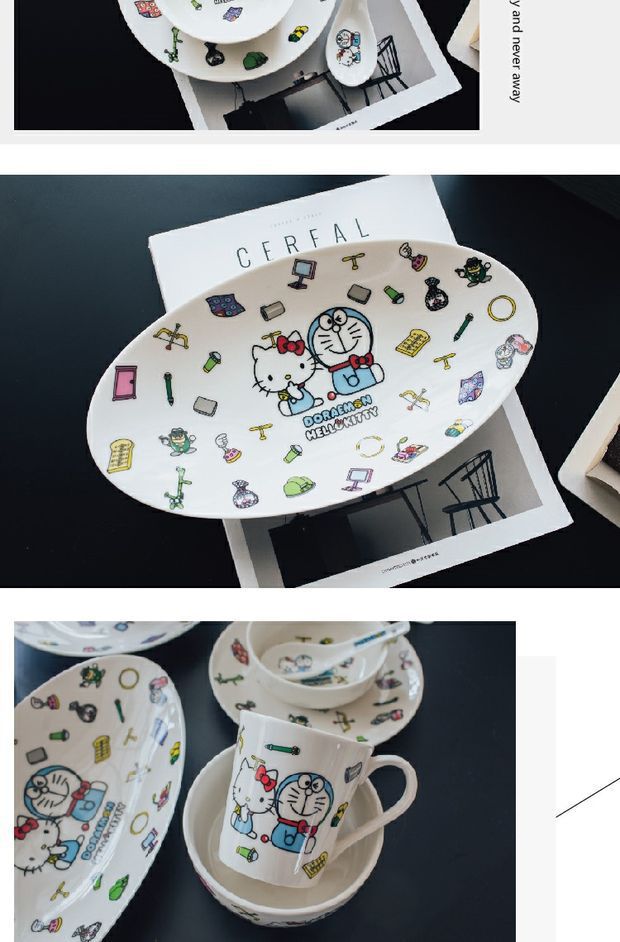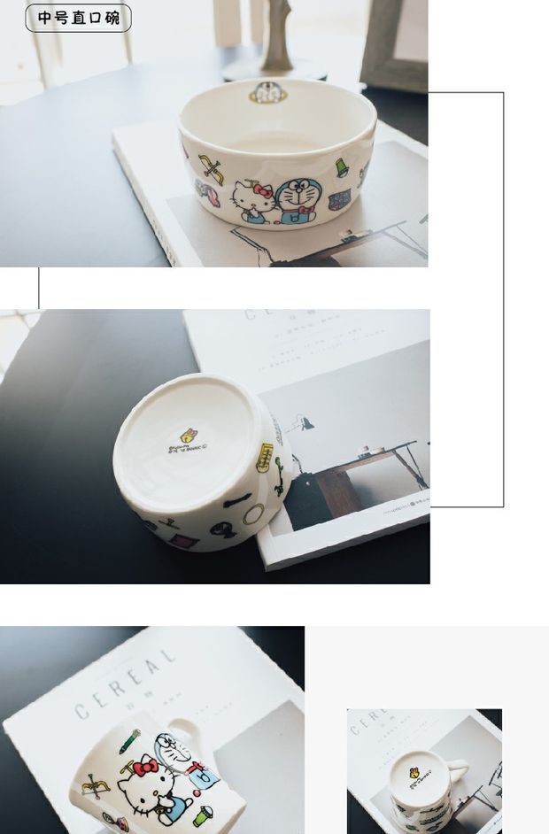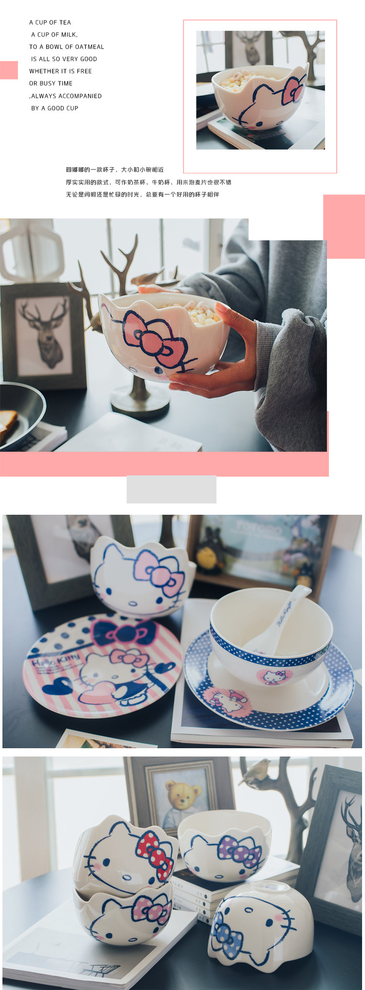 크리 에이 티브 만화 키트 세라믹 그릇 식기 인스턴트 국수 그릇 식당 그릇 귀여운 가정용 하이 컬러 가치 컵 플레이트 테일 목록