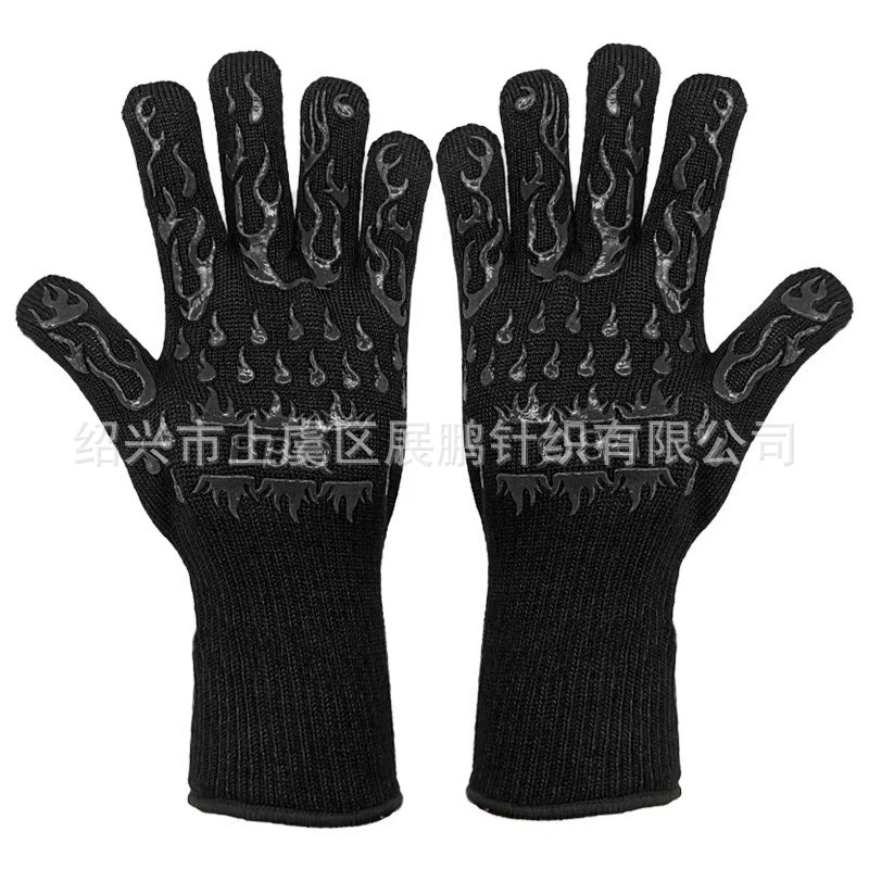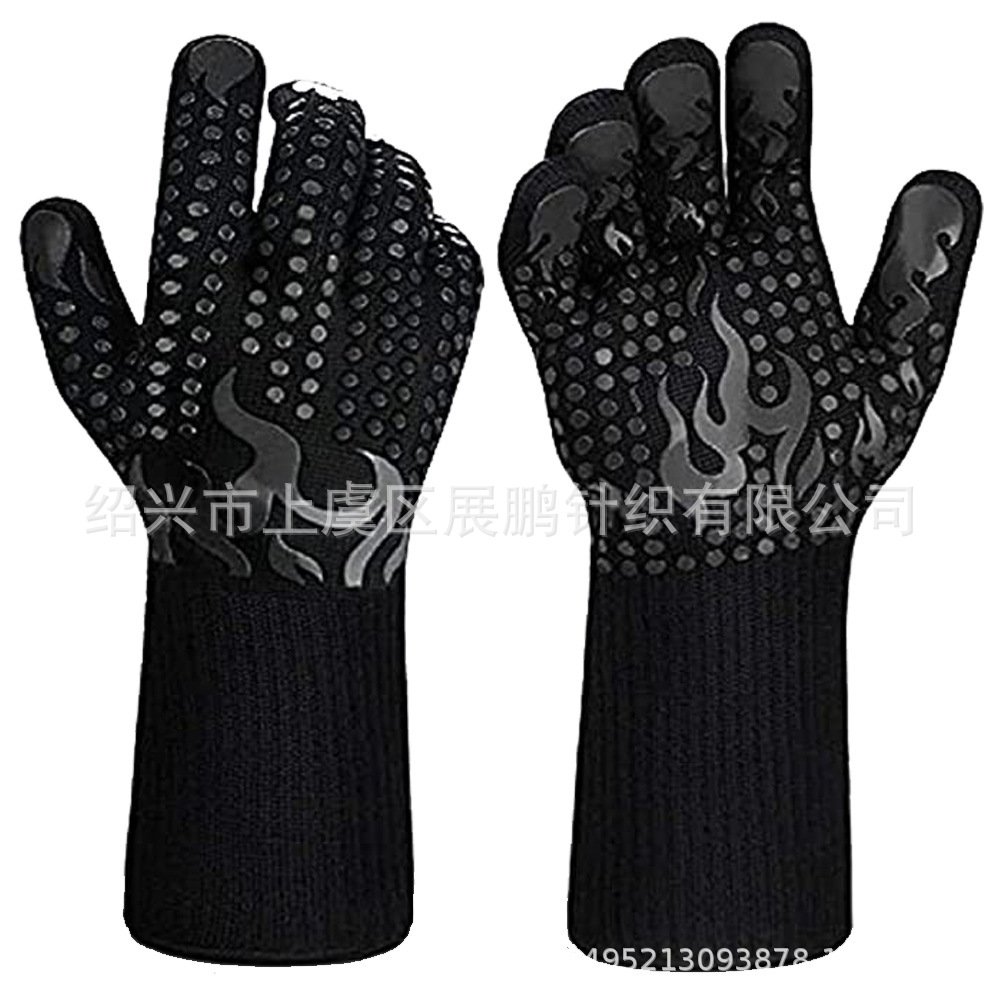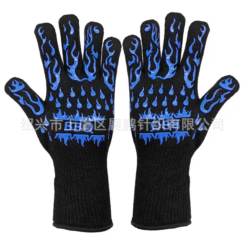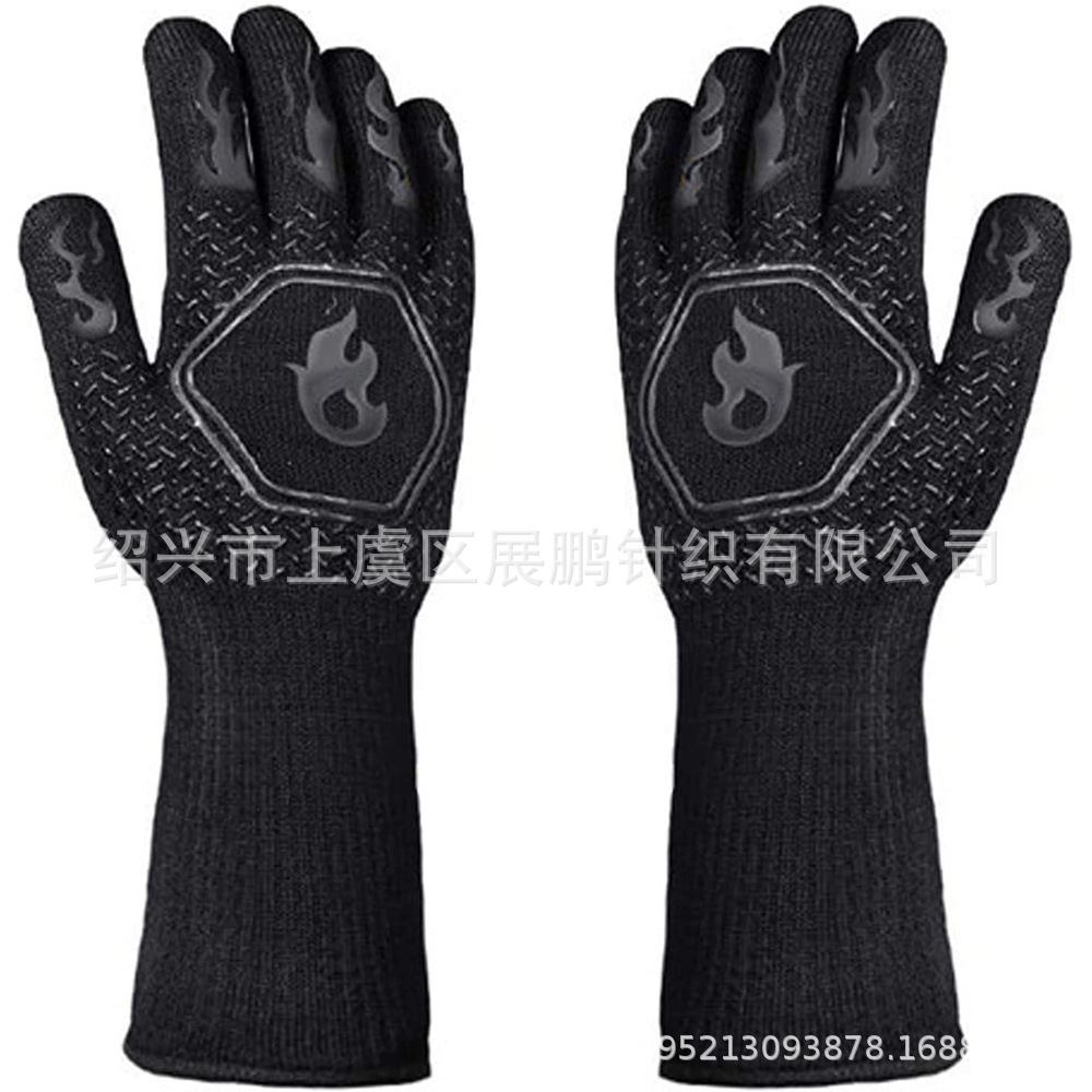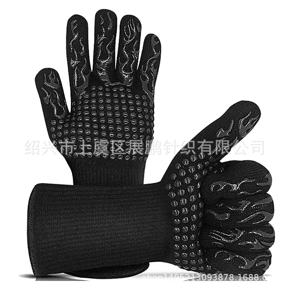 재고 제조 업체 도매 bbq 고온 저항 장갑 아라미드 실리콘 장갑 바베큐 전자 레인지 내화 단열 장갑