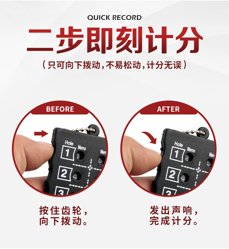 产品介绍18洞准确计分,记录得分分数,简单更直观,轻便易携带