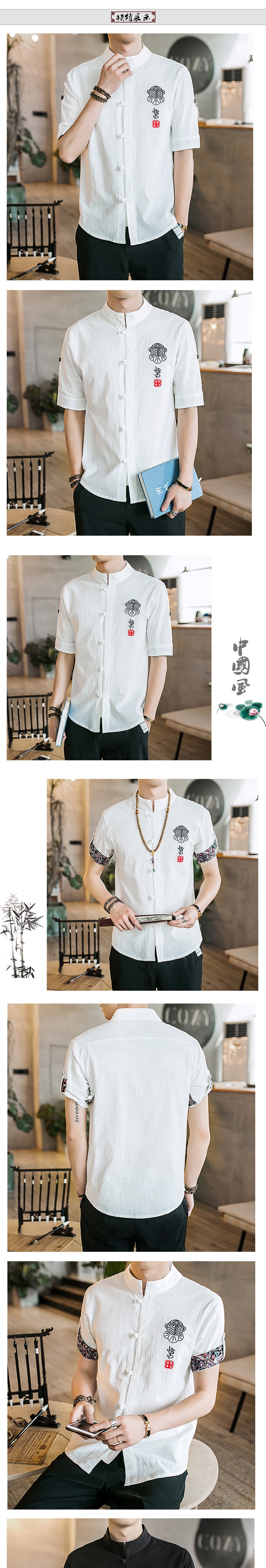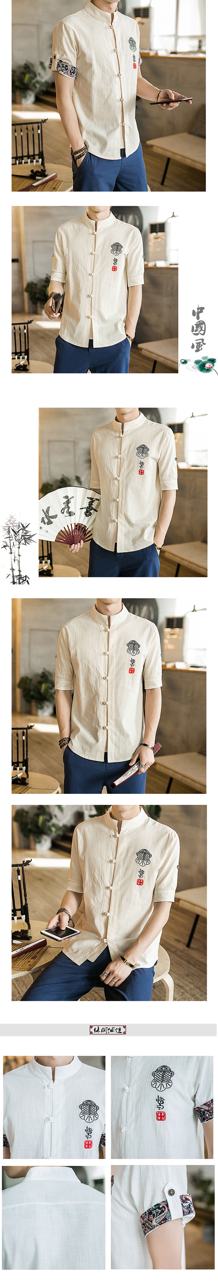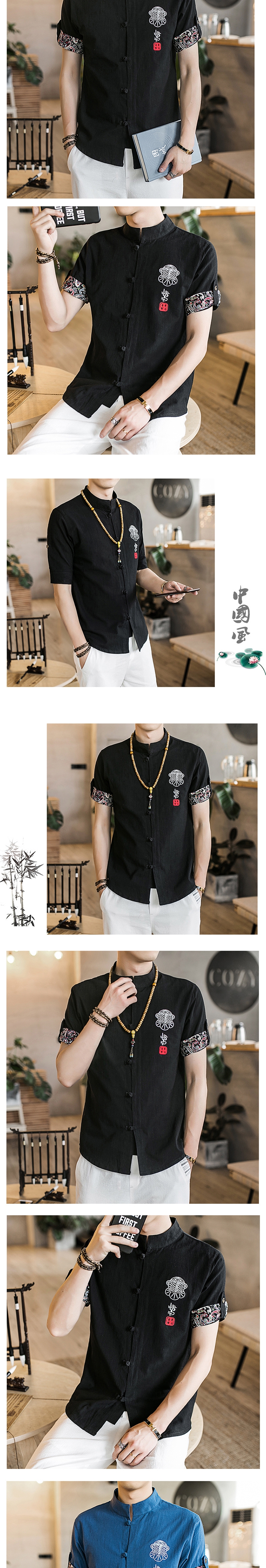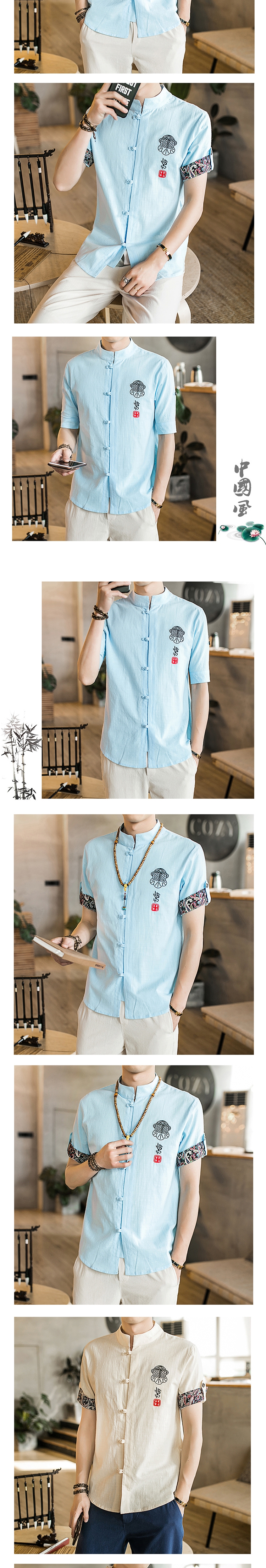 2021 여름 새로운 중국 스타일 린넨 셔츠 안감 남성용 면과 린넨 셔츠 남성용 자수 반팔 셔츠 남성용 버튼스토어 가기