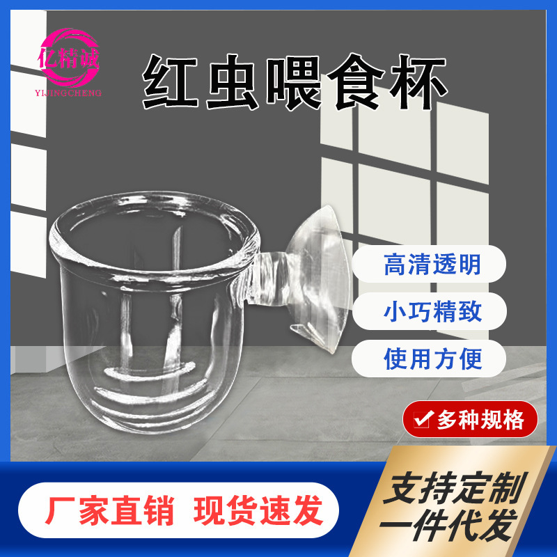 물 잔디 유리 빨간 곤충 컵 크리스탈 레드 곤충 피더 새우 탱크 선충 먹이 컵 포장 바늘 구멍을 잘라스토어 가기