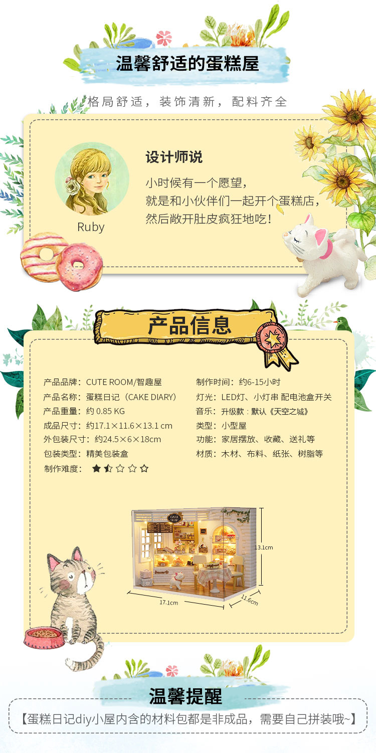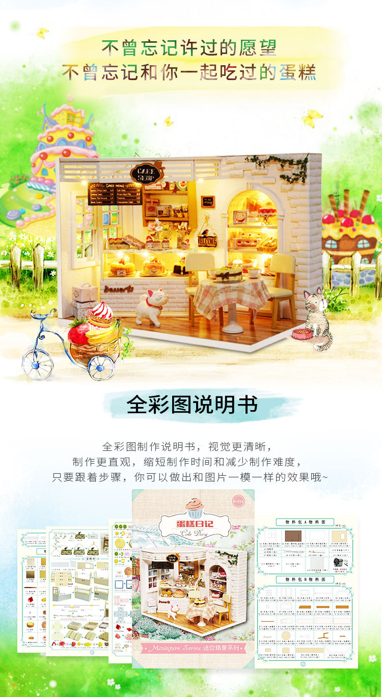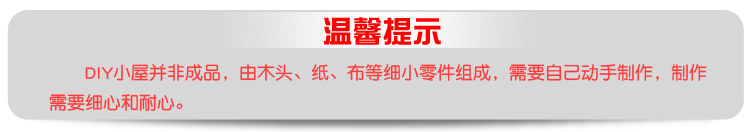 工具说明: 1、镊子:用来夹细上零件的。因为部分零件较小,使用镊子会比较方便。 2、螺丝刀:用来上螺丝用的,多用在小屋门框的合页处。 3、锥子/钻头:用来钻孔打眼的,可作小屋门框合页用,也可作穿引导线用。 4、剪刀:主要用来有剪裁纸张、布、绳等相关材料。 5、直尺:用来测量零件的尺寸,不同零件是按颜色和尺寸大小来区分的。 6、沙纸:可用来消除木块边缘的毛刺;当木块过长时可以把木块磨短;切口不平整时把切口磨平。 7、胶水:因为拼装过程中要粘木头、布、零件等,要用到胶水,产品本身自带有白乳胶,白乳胶的特点是粘合时间长,优点是拼错了,容易改动。如果需要快点粘合的就要使用德国UHU胶水、502胶水、AB胶、万能胶等,粘合时间短,特别是粘合防尘罩,效果更好。