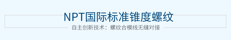 | 6 | NPT标准管螺纹 | NPT国际标准,ANSI/ASME B1.120,螺纹合模线无缝对接 |