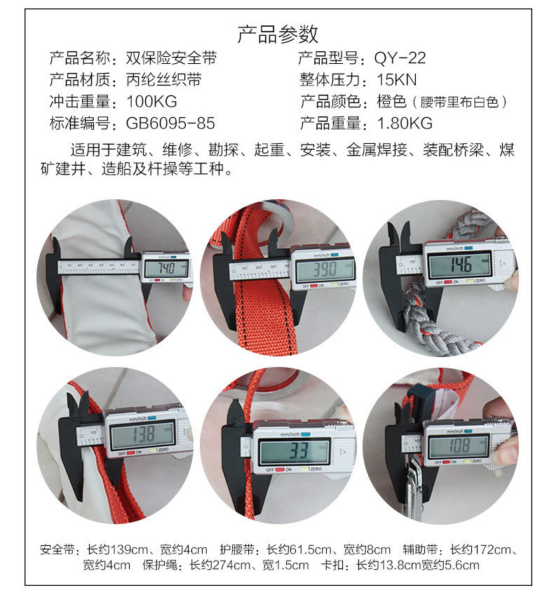 QY-22 공장 직접 공중 작업 낙하 방지 안전 보호 이중 안전 로프 벨트 안전
