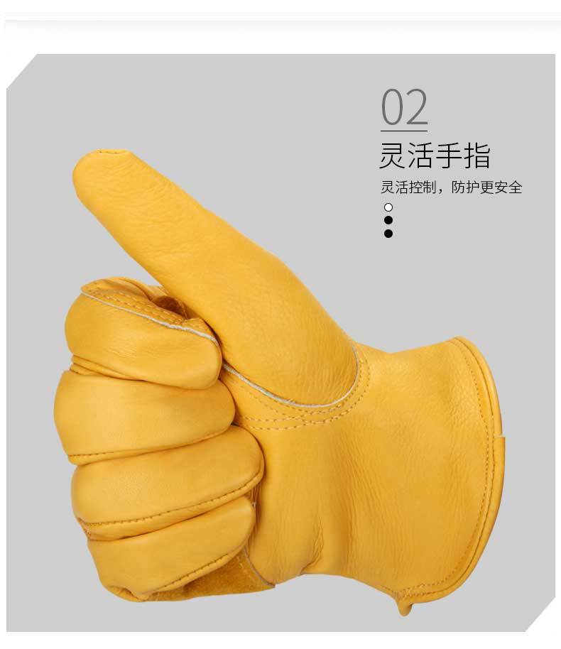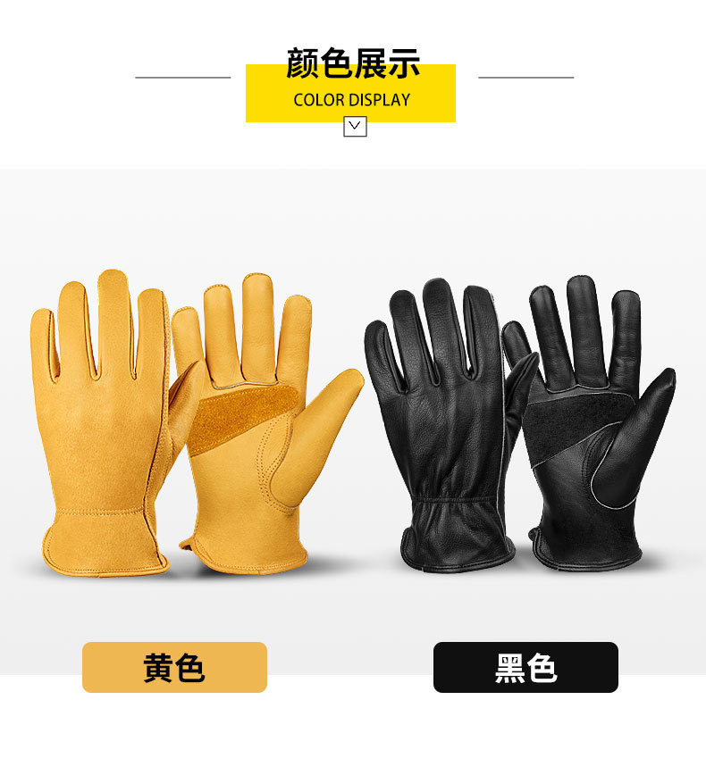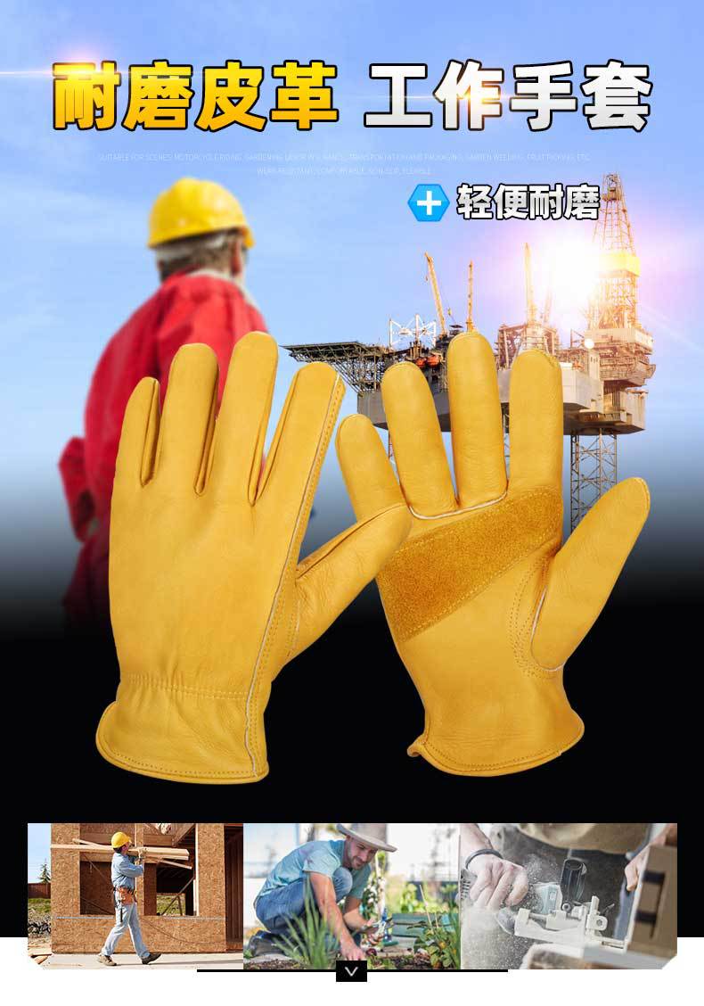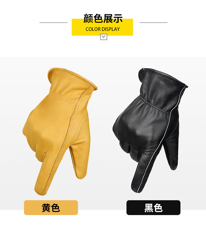 스팟 노란색 소가죽 원예 노동 보호 장갑 미끄럼 방지 및 내마모성 가죽 짧은 용접 로깅 자동 수리 작업 장갑