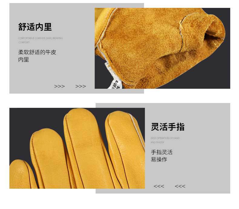 스팟 노란색 소가죽 원예 노동 보호 장갑 미끄럼 방지 및 내마모성 가죽 짧은 용접 로깅 자동 수리 작업 장갑스토어 가기