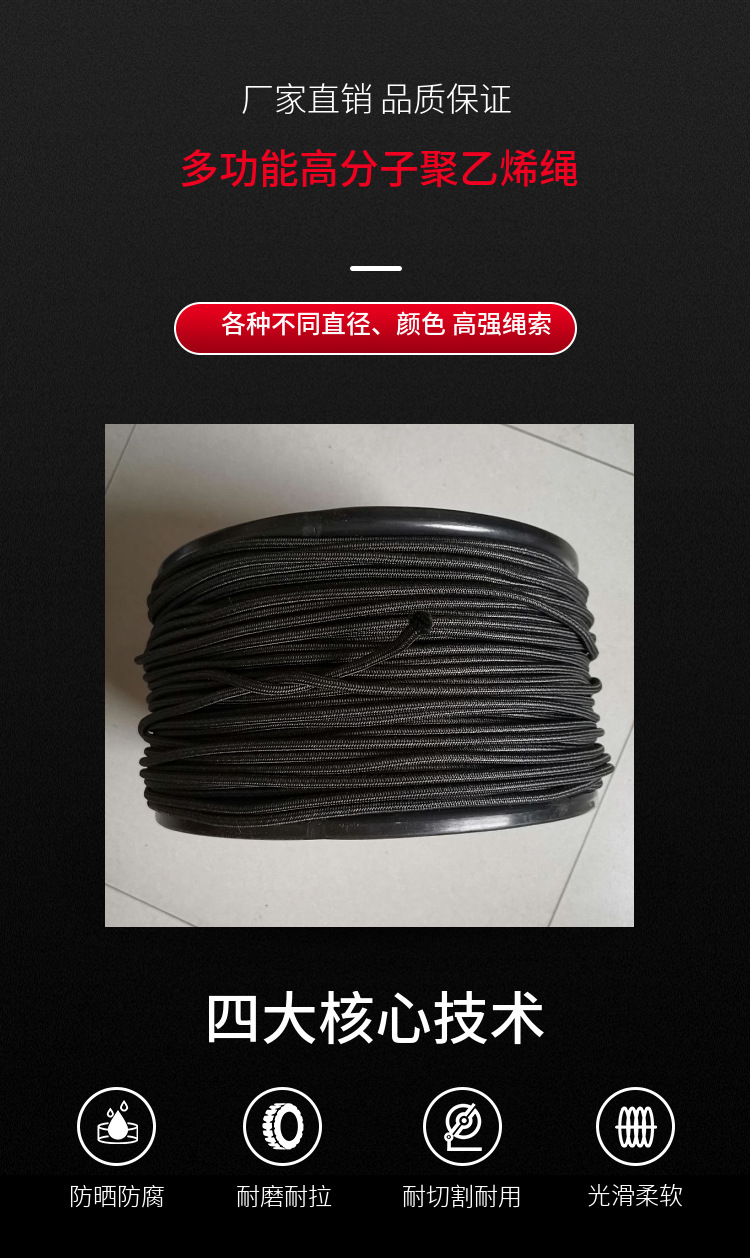 공장 직공급 2-8mm 안티에이징 블랙 고마력 안티산 및 알칼리 로프 초고분자 폴리에틸렌 로프스토어 가기
