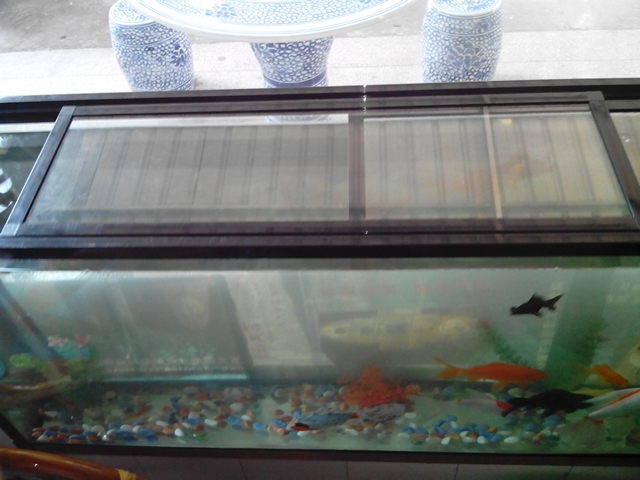 产品安装:无连接件,可直接装在鱼缸的两条长即可,如鱼缸的宽也要安装,需在直角连接处切割45度拼接。滑道的固定则可以打一点玻璃胶固定就行。