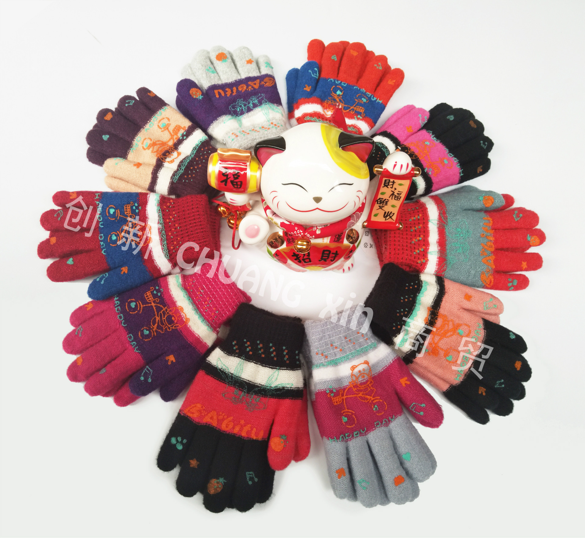 羊绒手套,马海毛手套,儿童手套,二指手套,提花手套