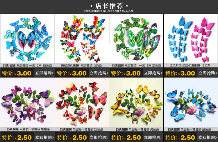 시뮬레이션 삽입 나비 3d pvc 단일 레이어 삽입 나비 가정 장식 거실 공예 장식품스토어 가기