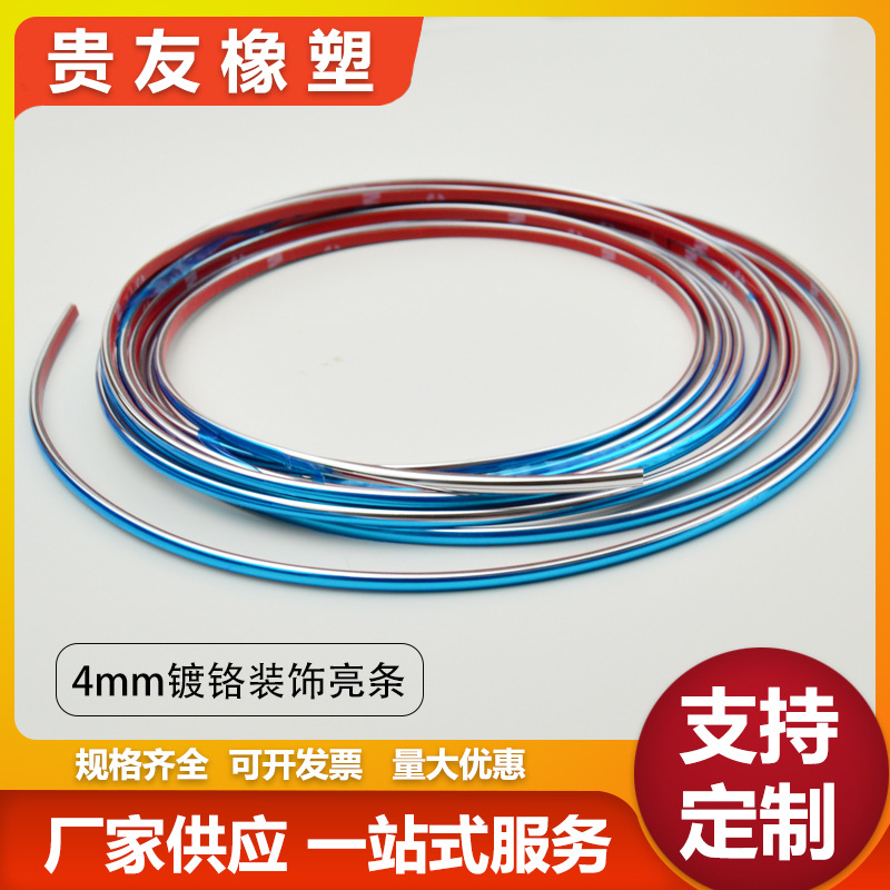 装饰条为ABS电镀工艺生产,高亮银色,工艺先进保证产品长时间保持亮度,3M背胶高粘性,粘贴更加的牢固。