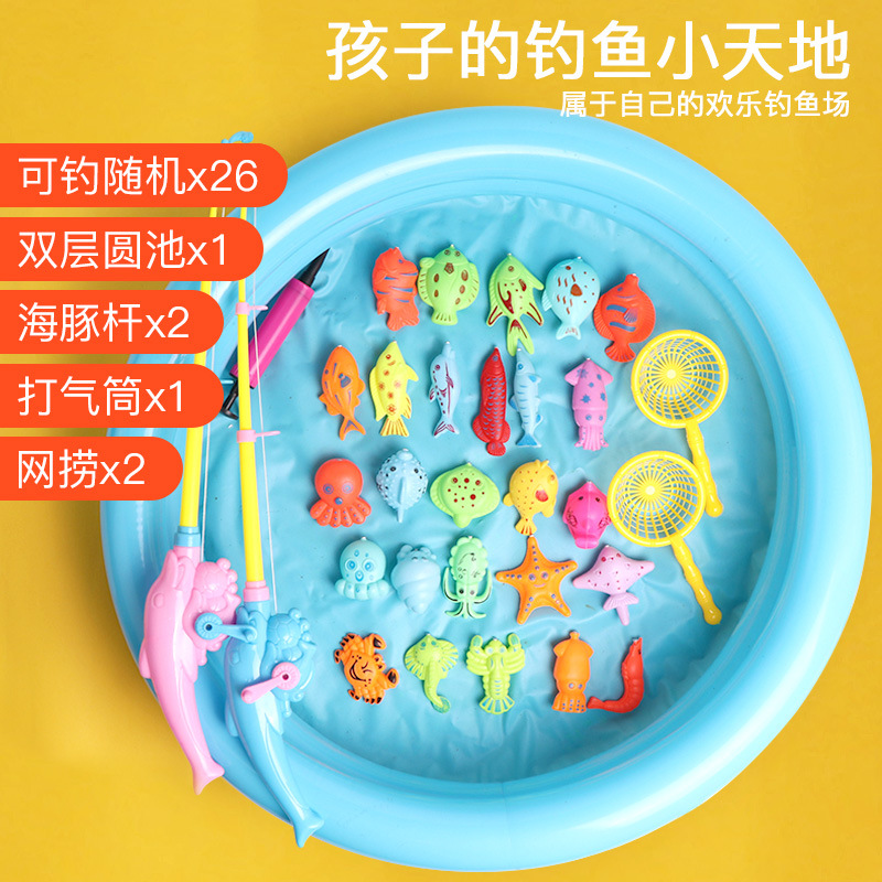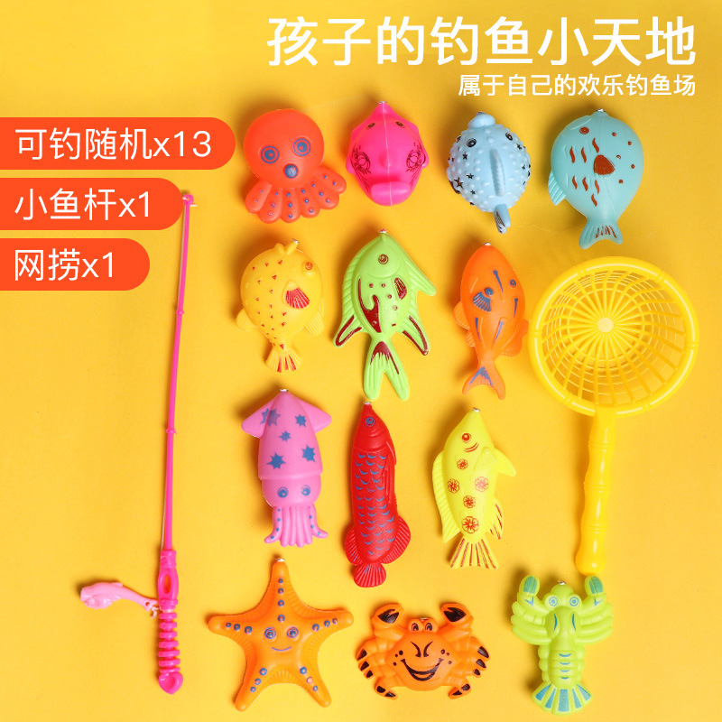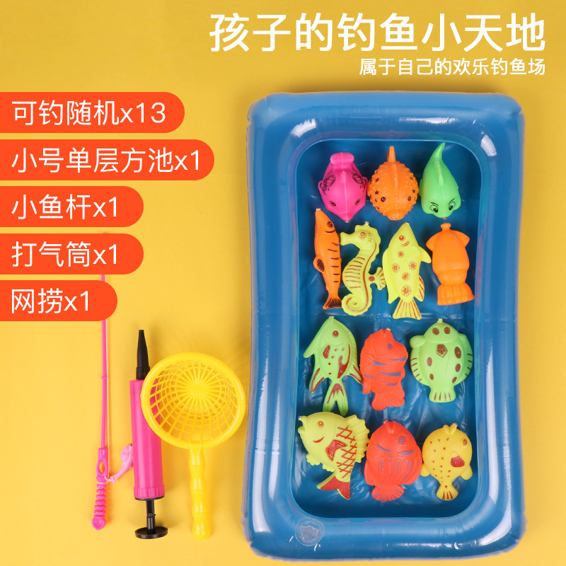 小鱼款式尺寸颜色随机、鱼竿、打气筒、网捞颜色随机