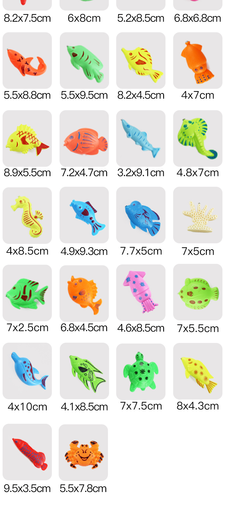 • 30 조각 세트: 물고기 26 개, 막대 2 개, 물고기 2 개