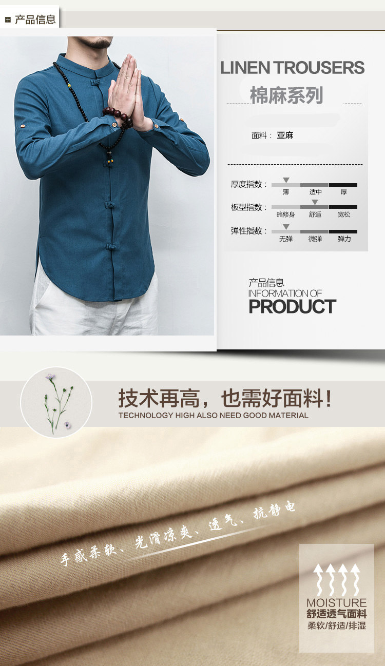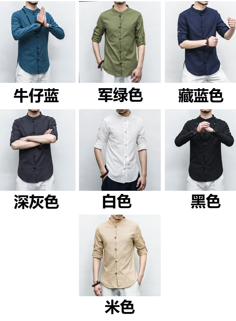 중국 스타일 여름 신상품 린넨 긴팔 캐주얼 셔츠 남성용 플러스 사이즈 탱 세트 트렌디한 남성용 버클 코튼 린넨 셔츠스토어 가기