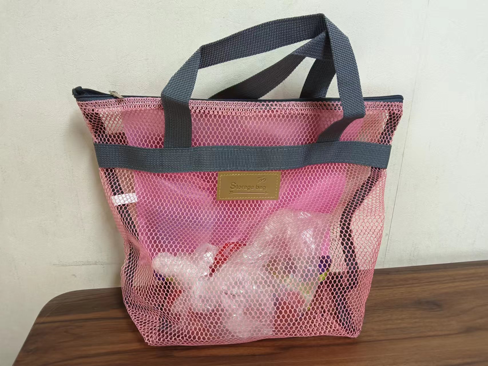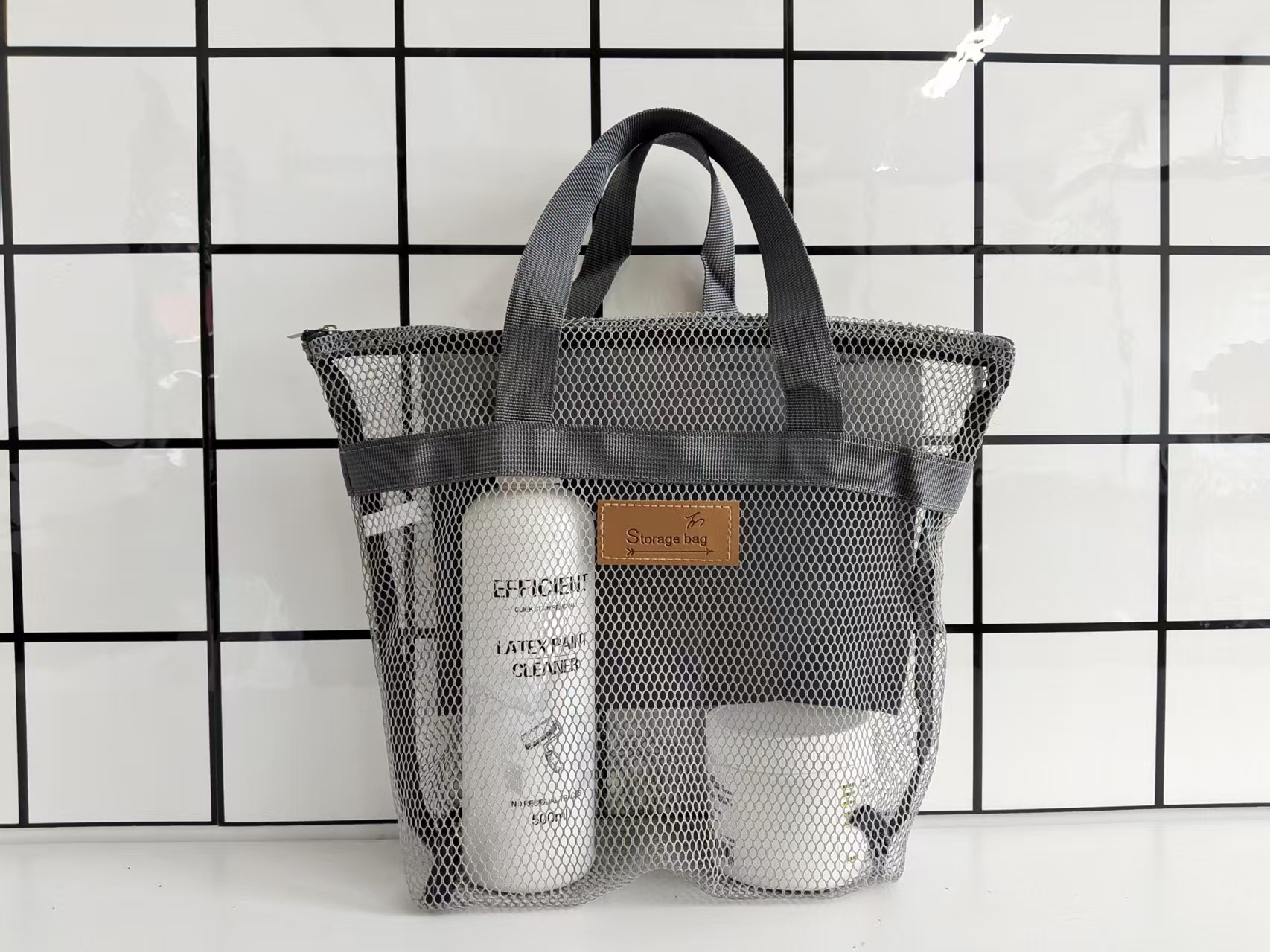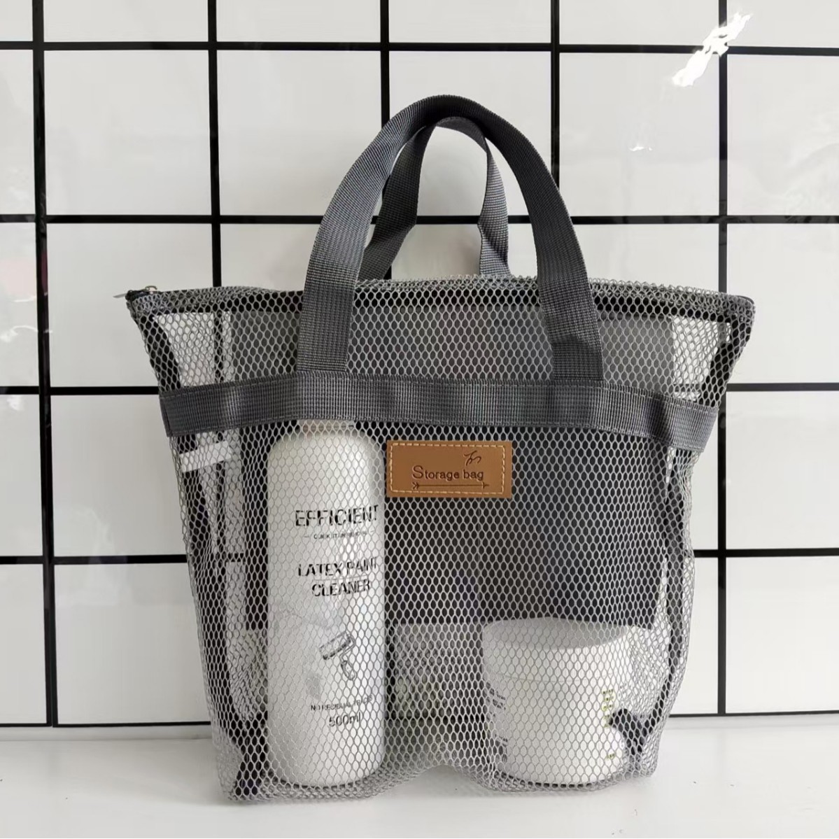 비치백, 휴대용 수납가방, 메쉬 세면도구 가방, 여행용 화장품 가방, 심플한 아웃도어 지퍼 정리 가방, 세면도구 가방