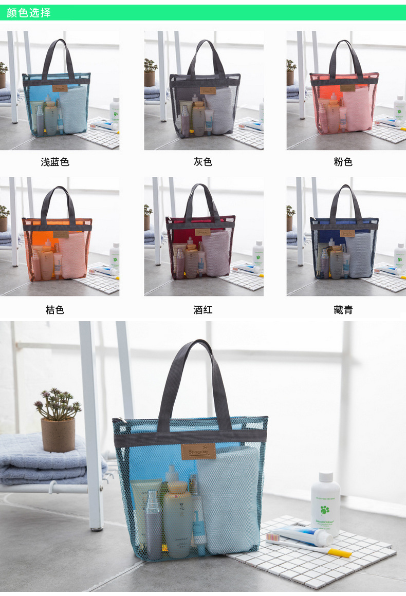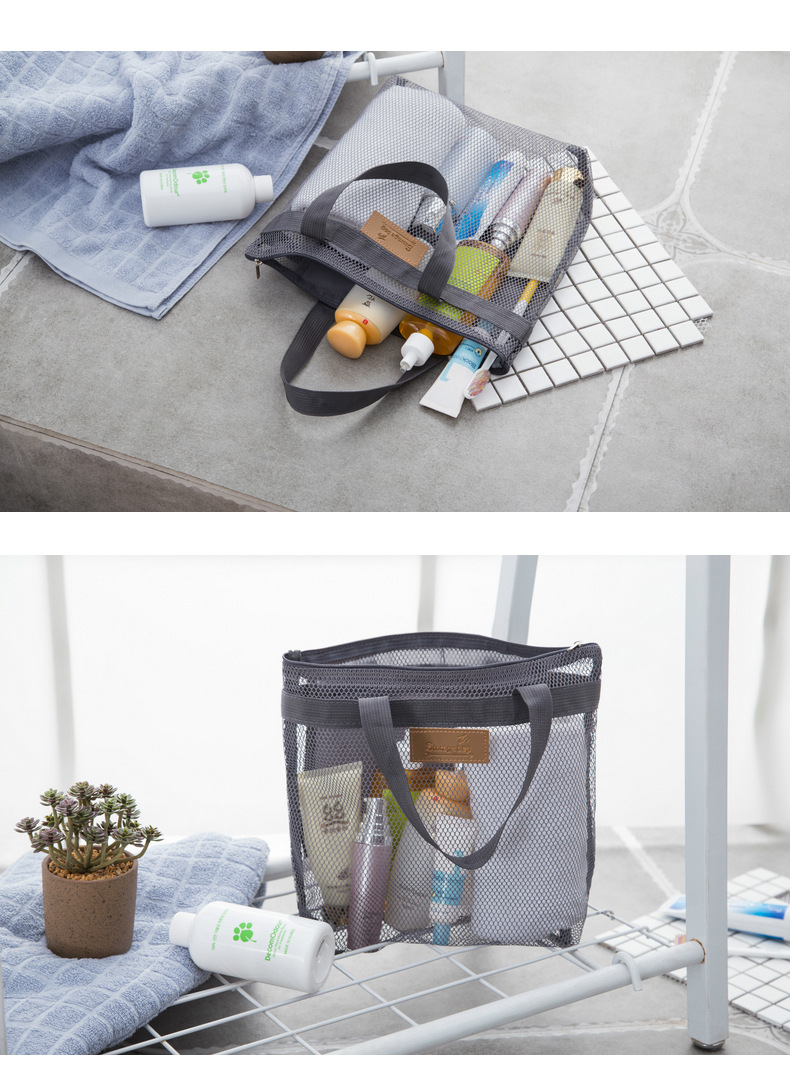 비치백, 휴대용 수납가방, 메쉬 세면도구 가방, 여행용 화장품 가방, 심플한 아웃도어 지퍼 정리 가방, 세면도구 가방스토어 가기