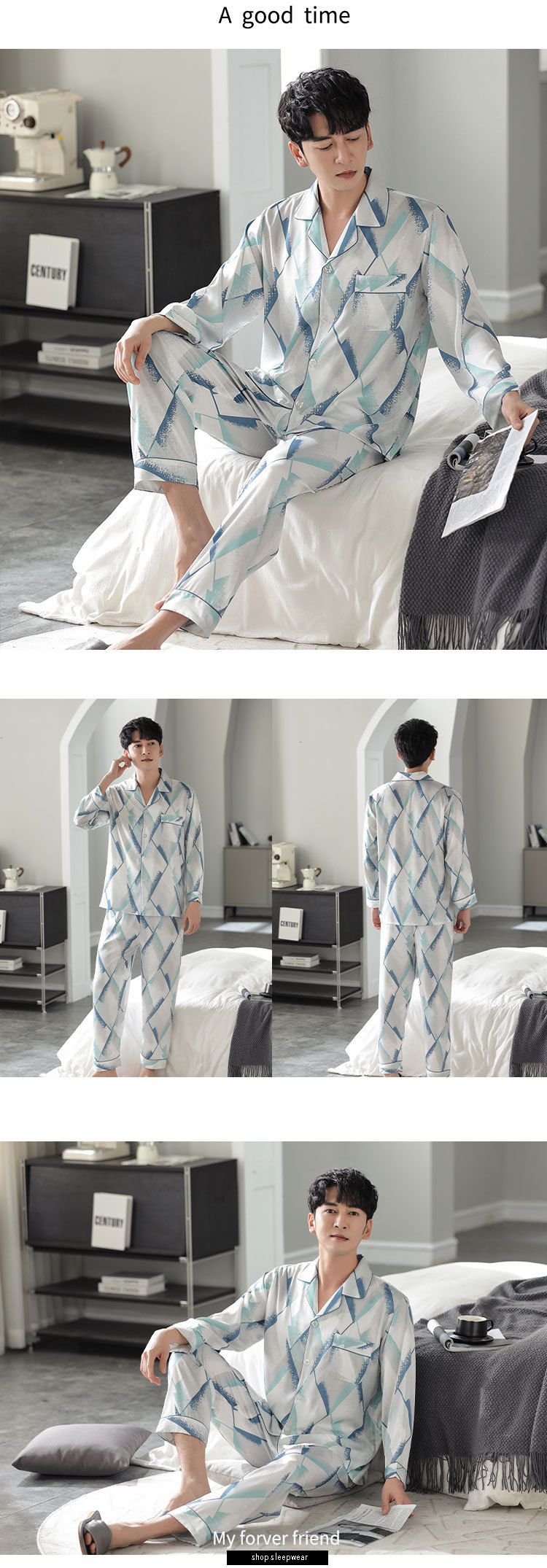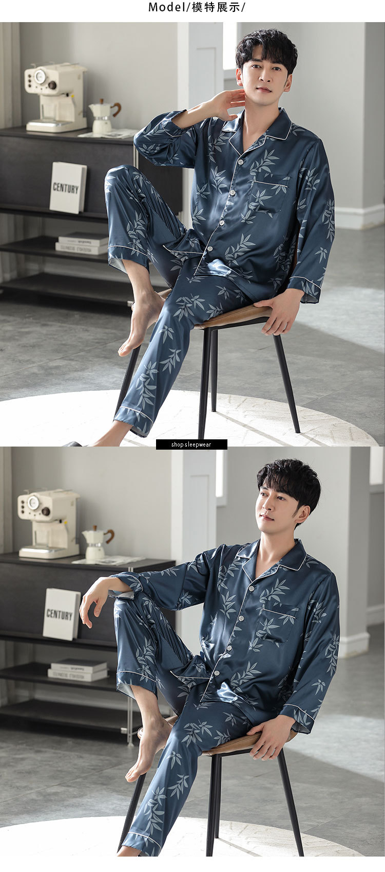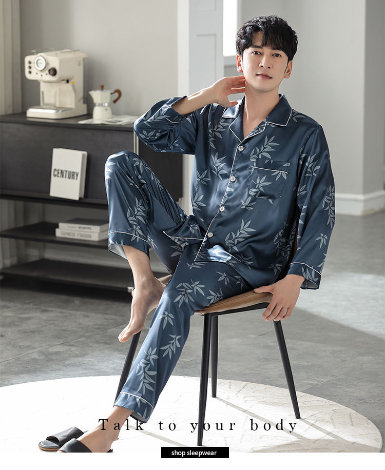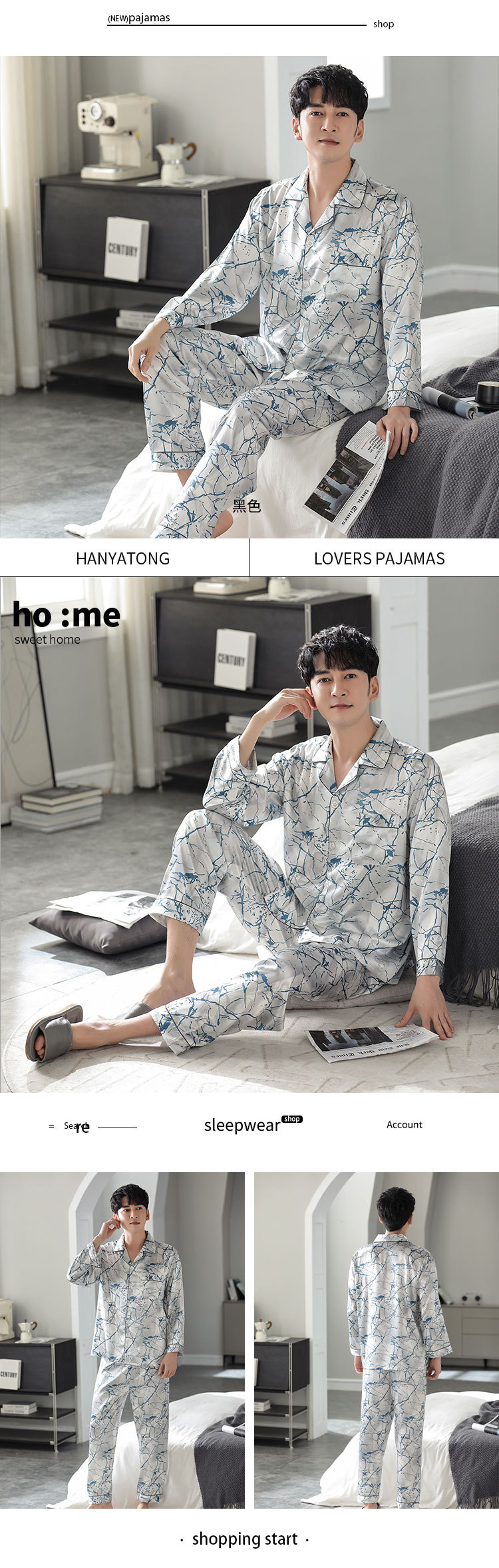 한 Yatong 실크 남자의 잠옷 새로운 봄과 여름 인쇄 실크 세트 가을 여자의 긴 소매 가정 옷스토어 가기