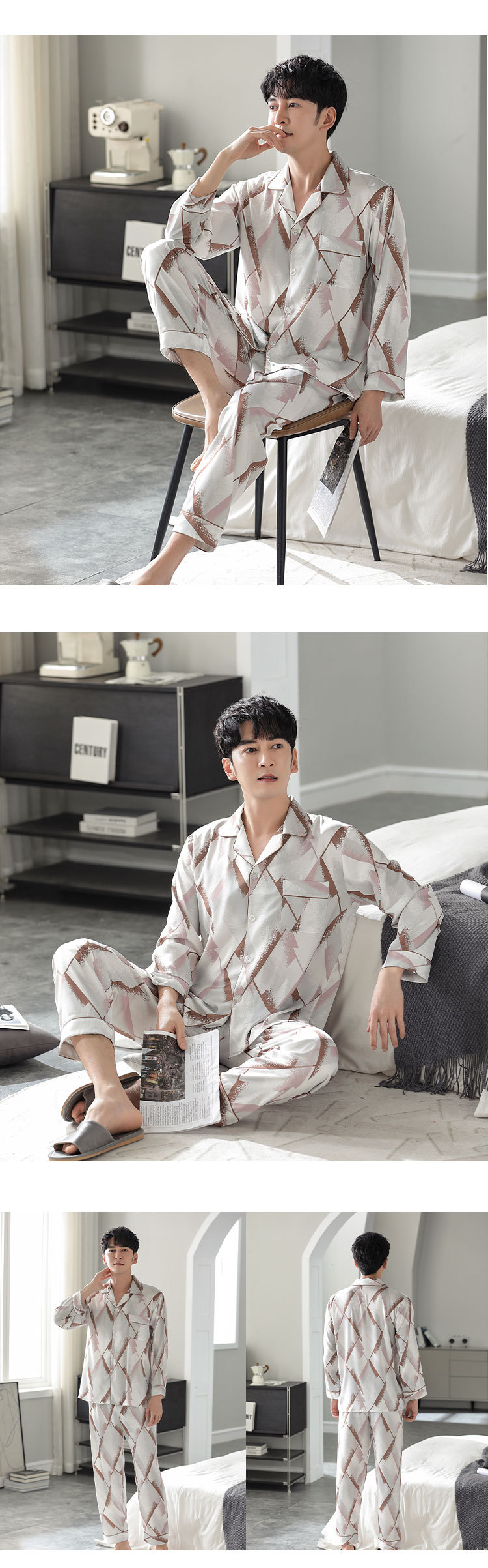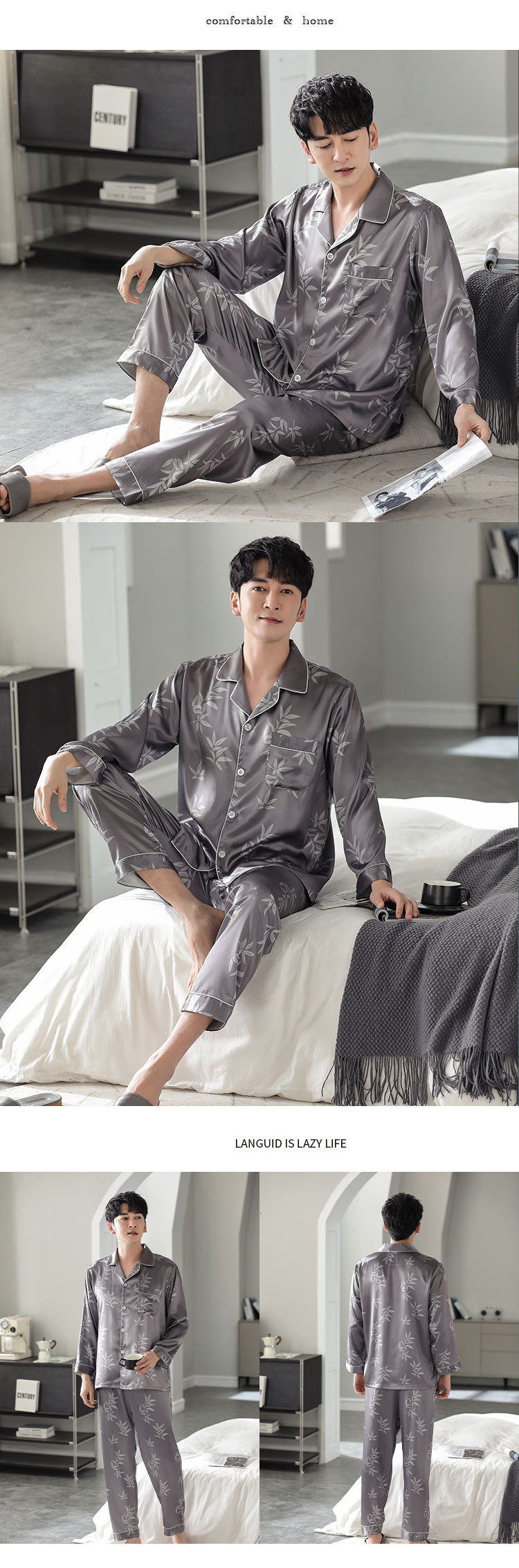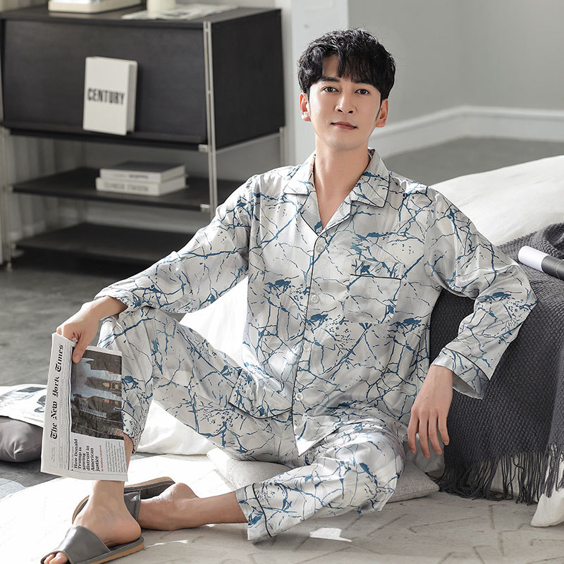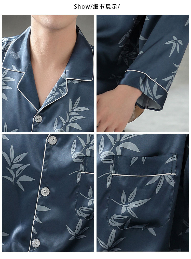 한 Yatong 실크 남자의 잠옷 새로운 봄과 여름 인쇄 실크 세트 가을 여자의 긴 소매 가정 옷