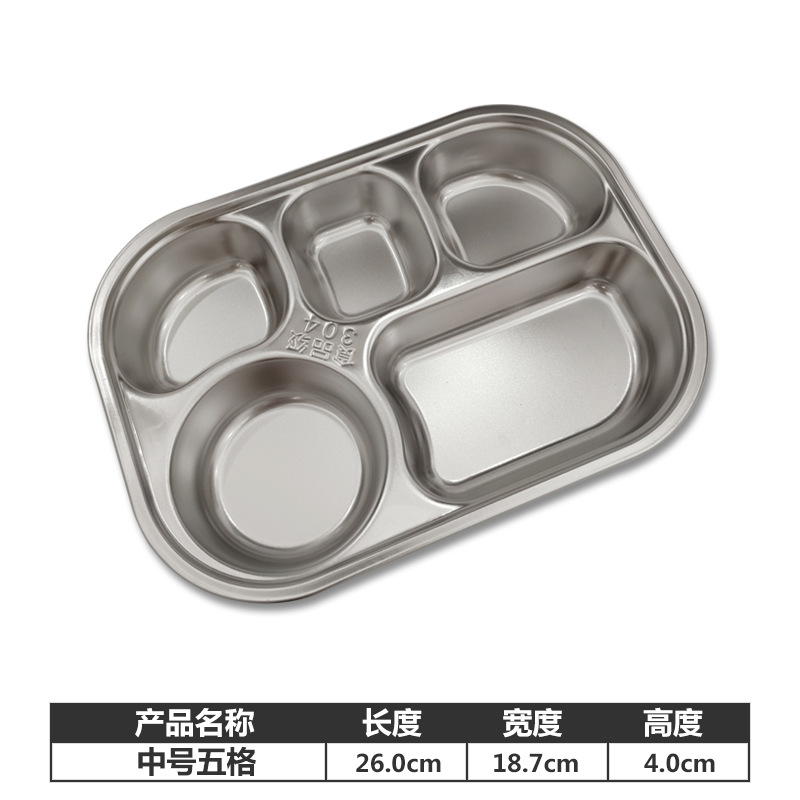 304 스테인레스 스플릿 플레이트 4 5 6 패스트 푸드 플레이트 성인 학생 매점 두꺼운 뚜껑이있는 어린이 식사 접시