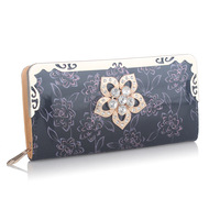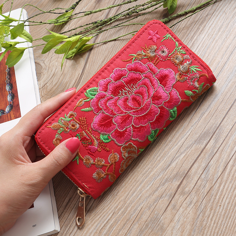 새로운 민족풍 모란 자수 지갑 양면 자수 천 소재 여성용 롱 지갑 지퍼 클러치백 수납
