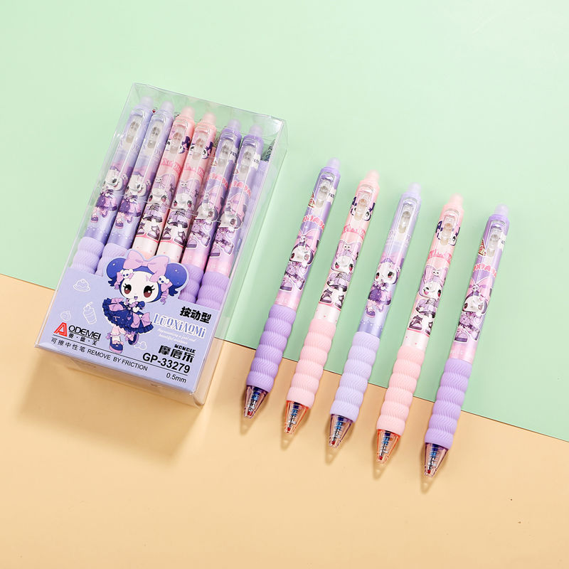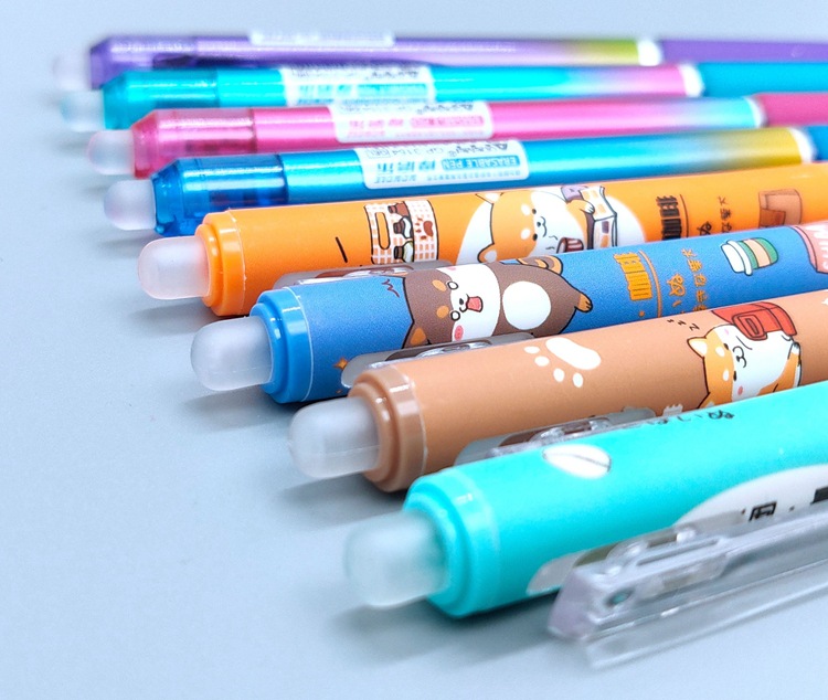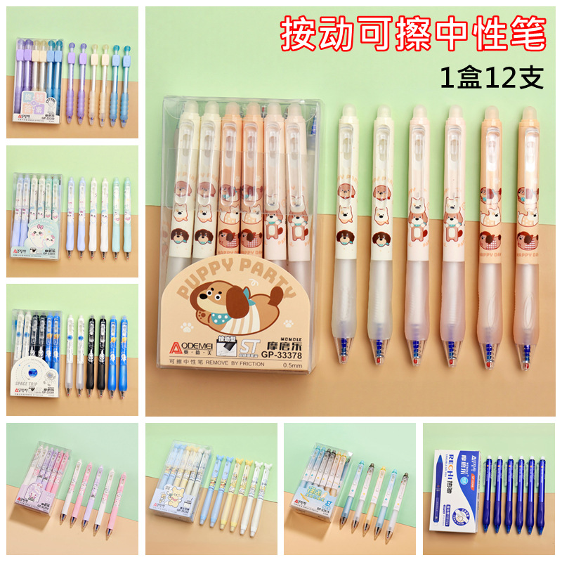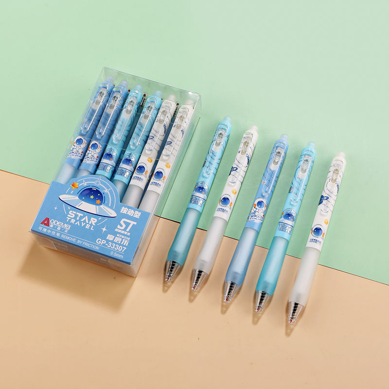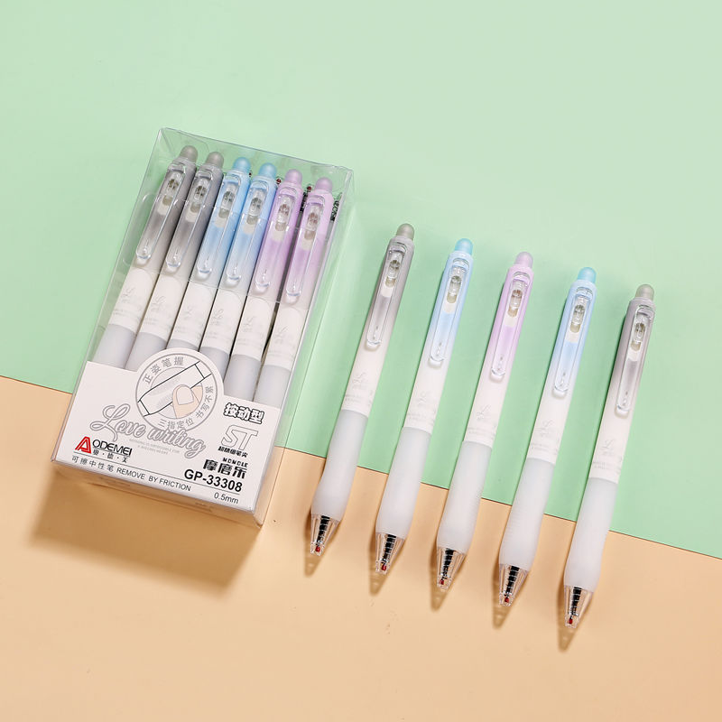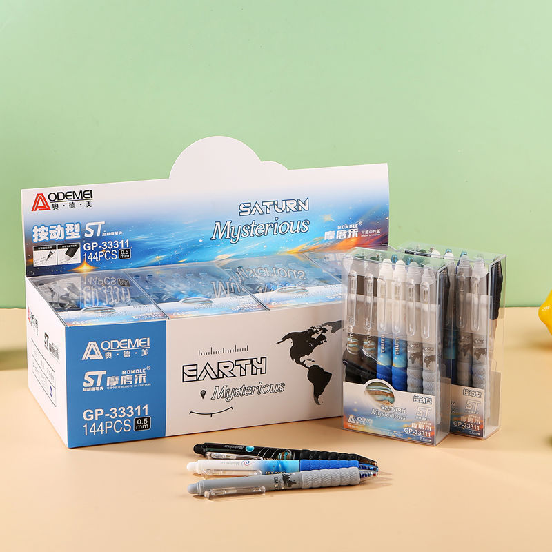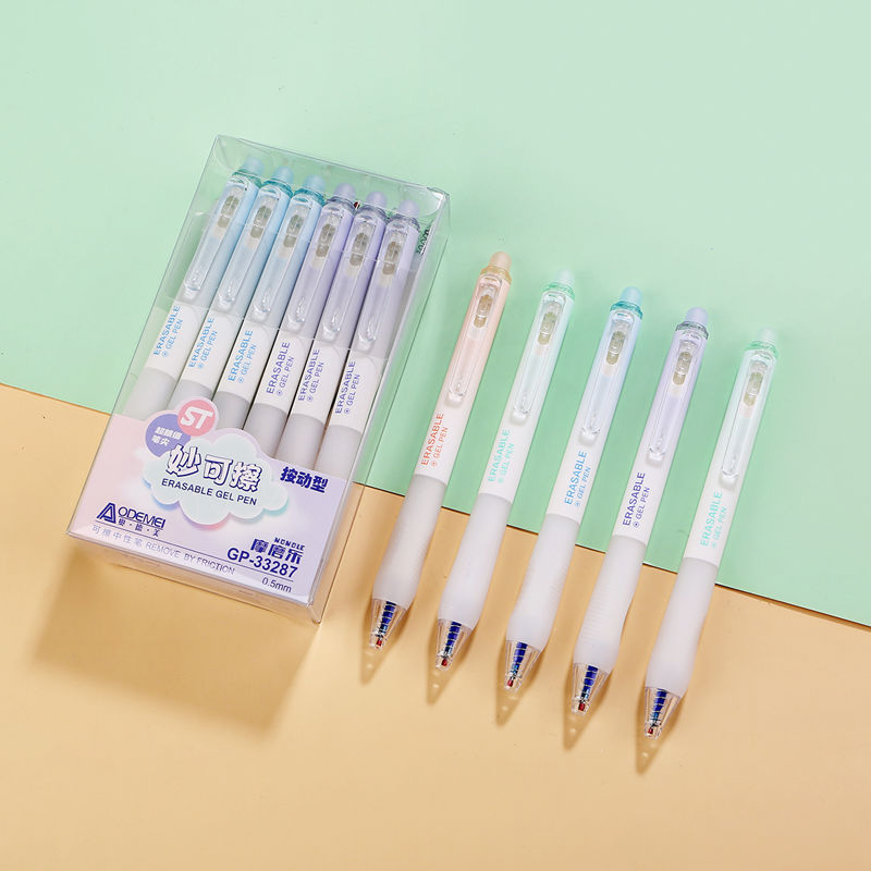 새로운 두꺼운 펜촉의 모모레 지워지는 젤 펜, 학생용 지워지는 펜, 0.5mm 총알형 팁, ST 크리스탈 블루 카본 블랙