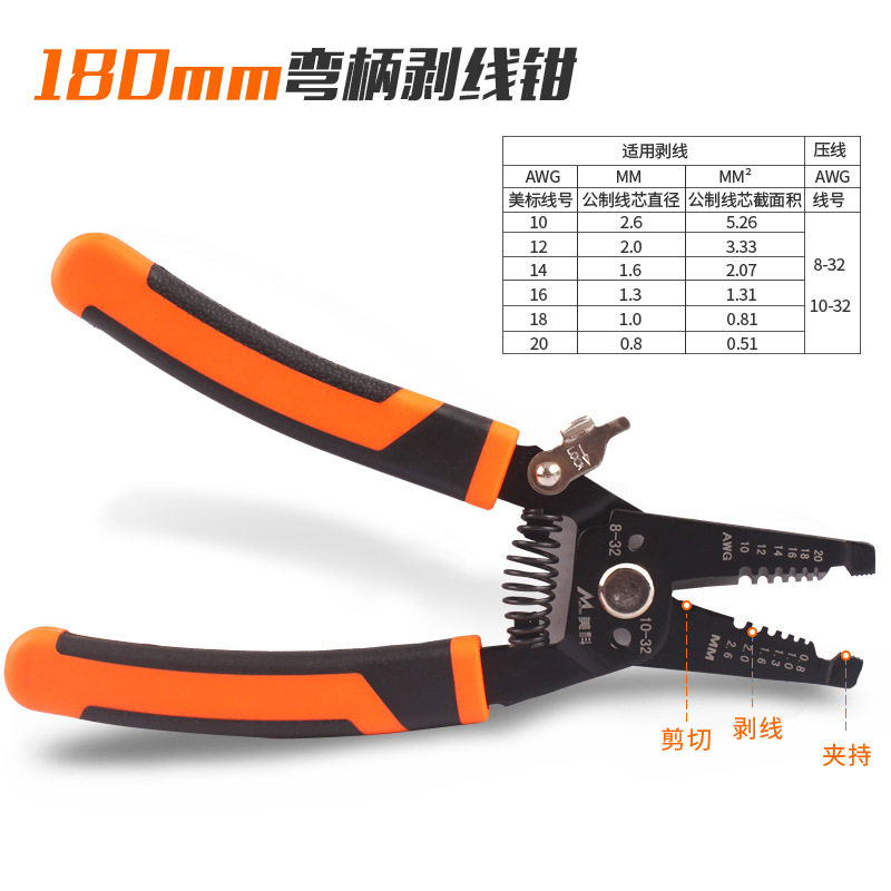 • 180mm 곡선 핸들 와이어 스트리퍼
