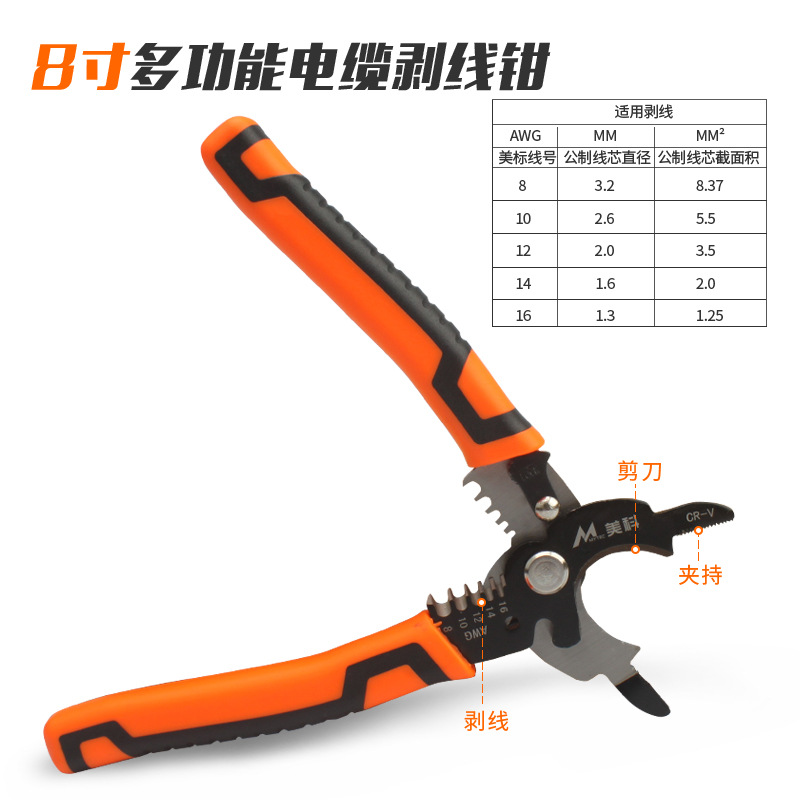 Meike 전기 도구 수동 필링 펜치 와이어 스트리퍼 케이블 와이어 플라이어 도매 다기능 와이어 스트리퍼스토어 가기