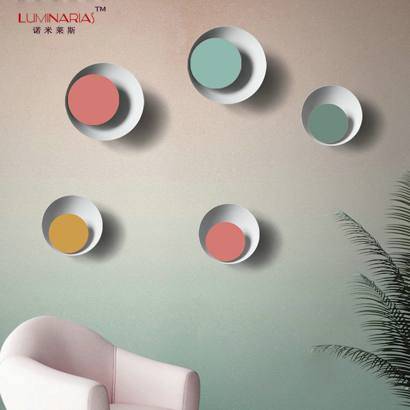 新款创意北欧简约现代客厅餐厅创意卧室灯彩色圆形马卡龙月食壁灯스토어 가기