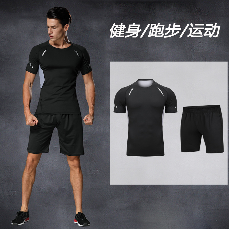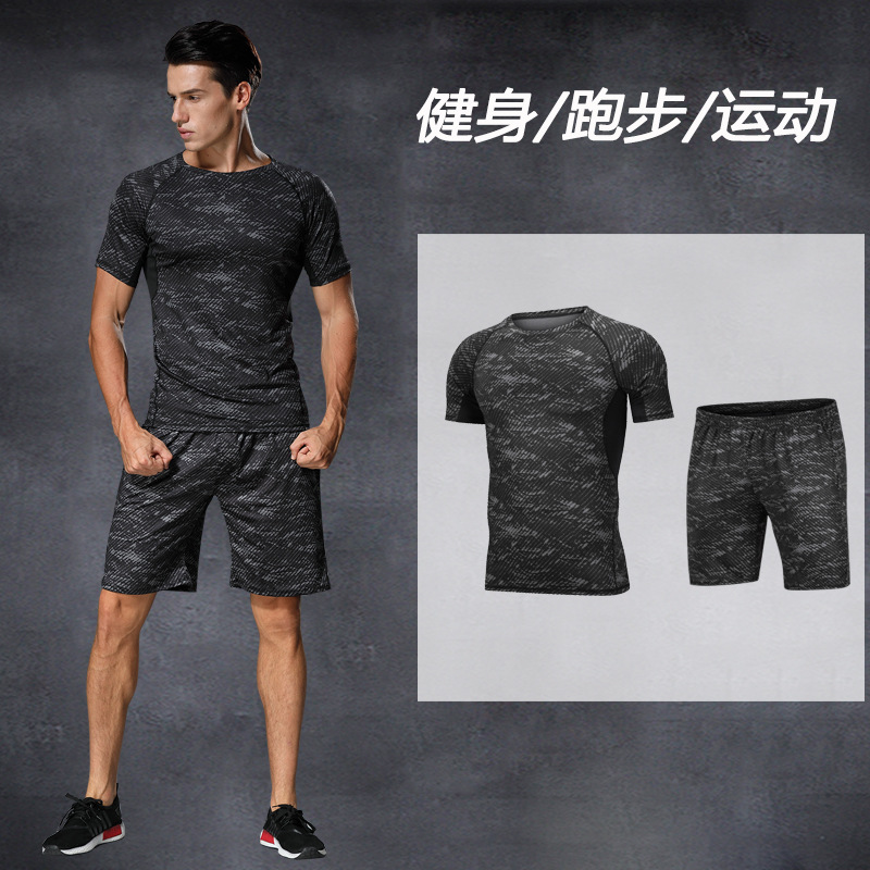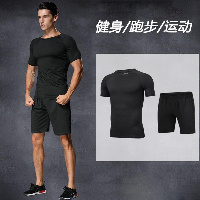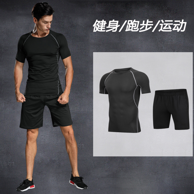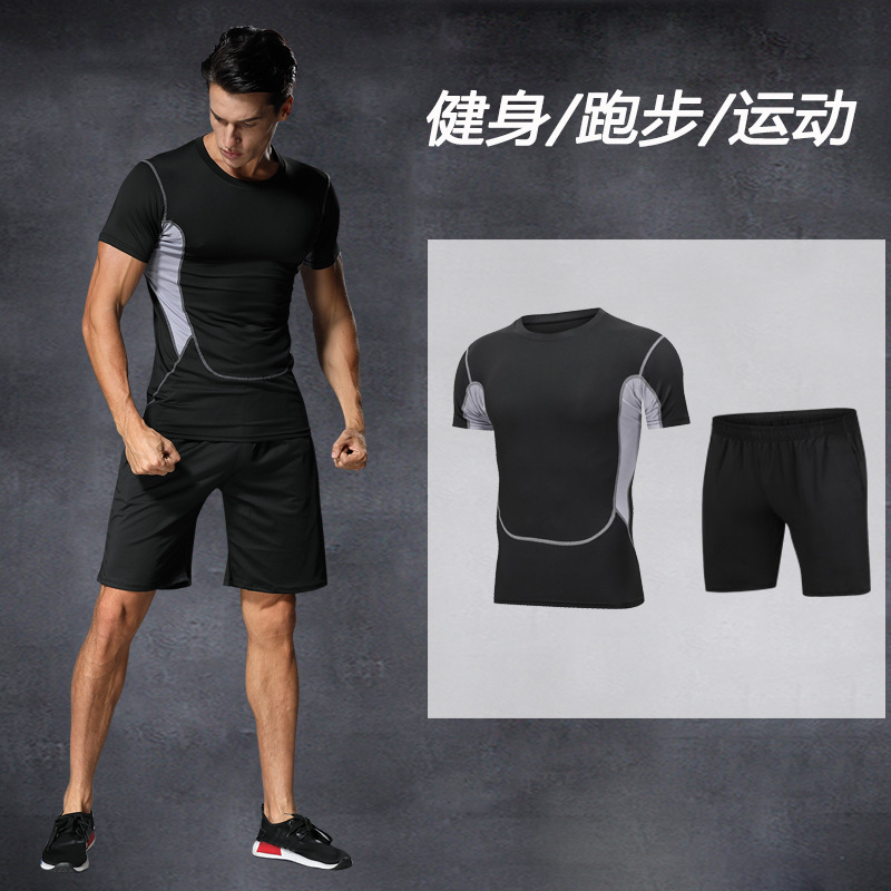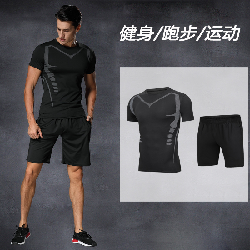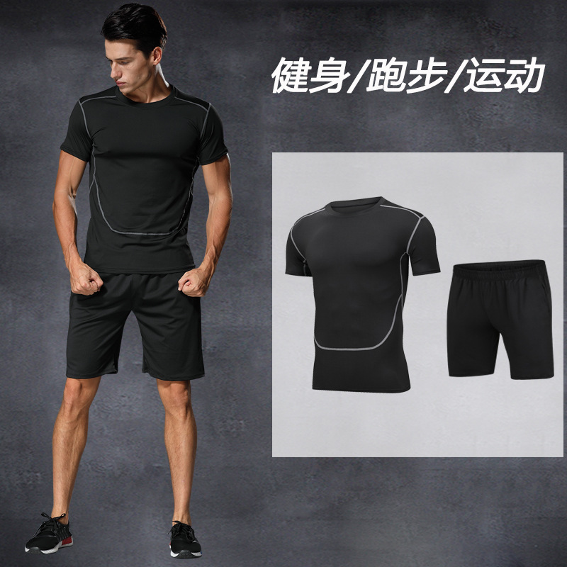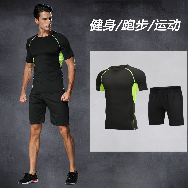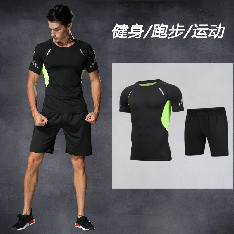 스포츠 야외 운동복 남성용 투피스 반팔 반바지 여름 속건 타이츠 농구복 러닝복 세트
