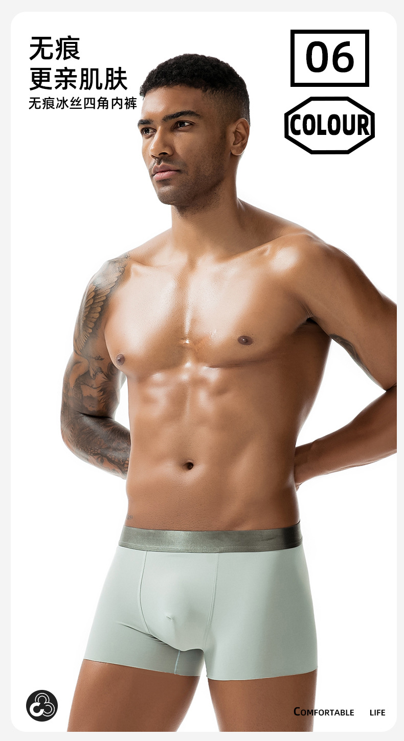 남자 속옷 단색 원활한 복서 바지 허리 아이스 실크 속옷 남자 4 각 통기성 속옷 남자 속옷 도매스토어 가기