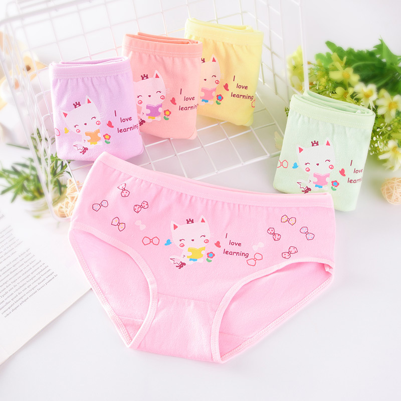 뜨거운 판매 소녀 속옷 삼각형 면 만화 어린이 네 코너 소녀 중간 및 큰 어린이 반바지 아기 소녀 반바지스토어 가기
