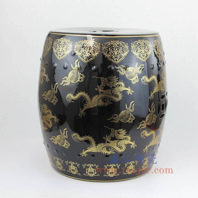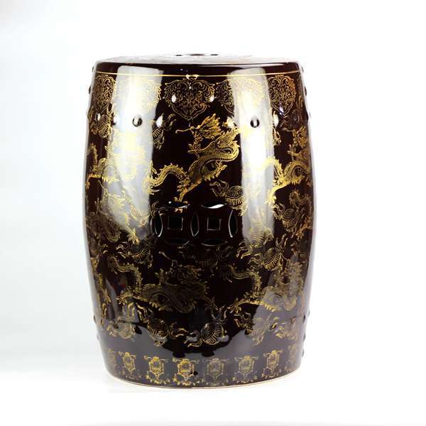 产品名称 :RZKL01-B  深咖啡色颜色釉龙纹凳带铜钱孔陶瓷墩花园凳浴室凳