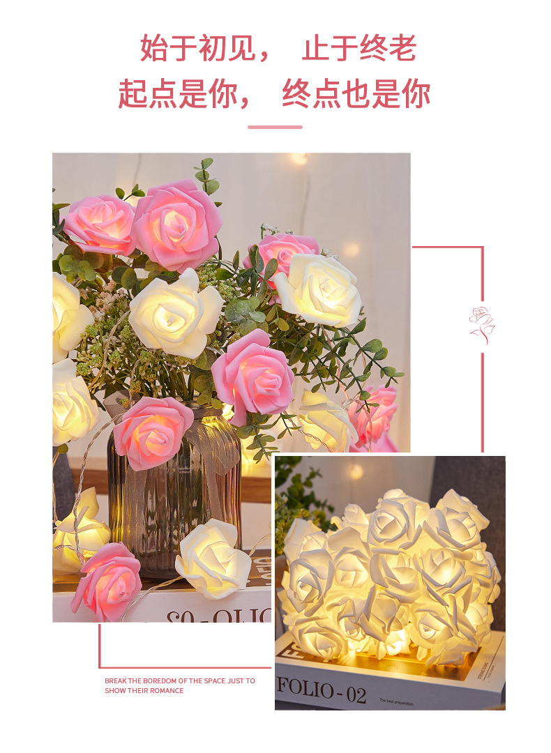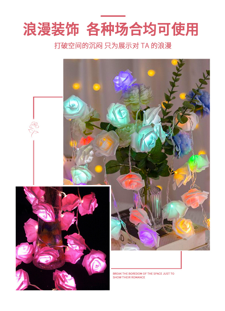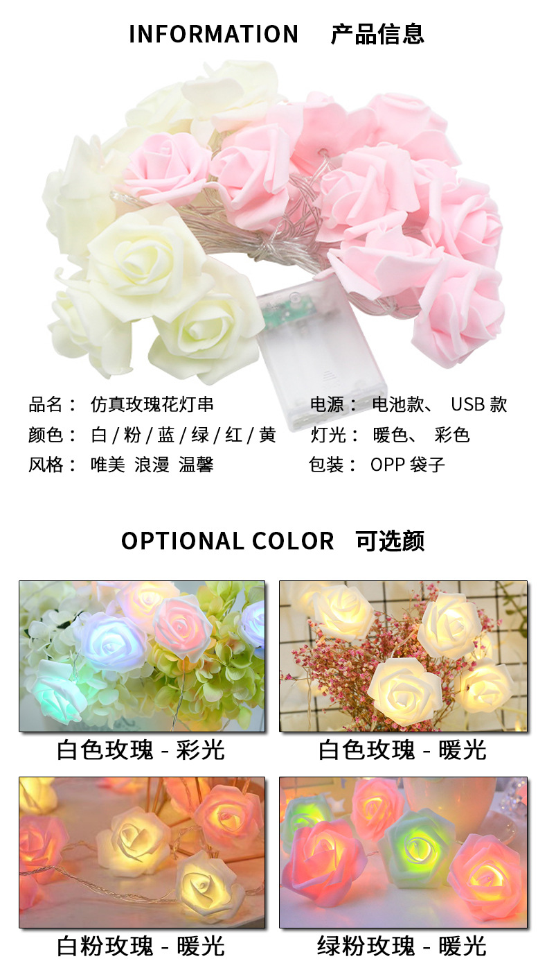 LED 모조 장미 꽃 전구 스트링 리모컨 장식 점멸등 결혼식 로맨틱 프로포즈 고백 발렌타인데이 생일 선물
