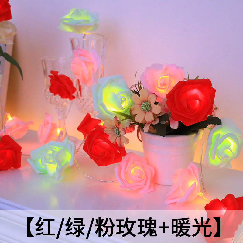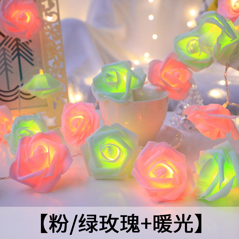 • 녹색 + 빨간색 + 분홍색 장미 조명 (따뜻한 빛)