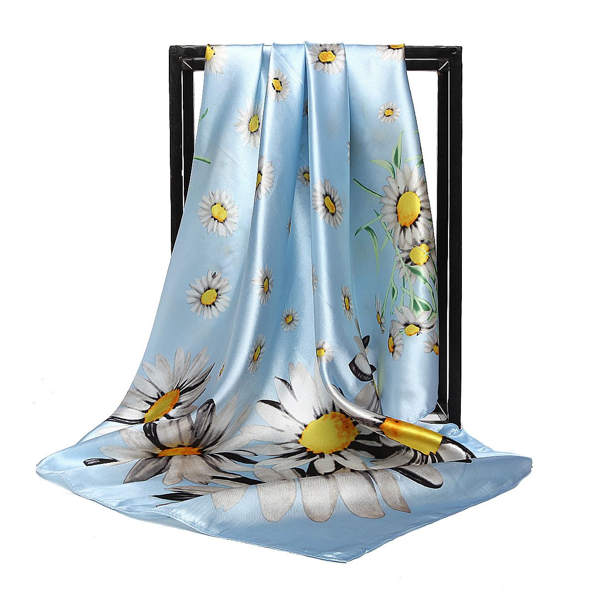 Gaohe 실크 스카프 90cm * 90cm 사각형 스카프 꽃 꽃 데이지 여성 실크 스카프 AliExpress 소원스토어 가기