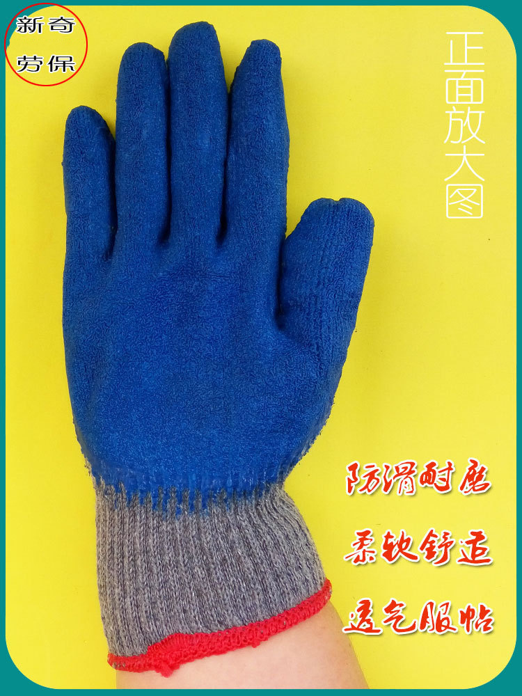 【商品名称】:300#十针棉线灰纱蓝乳胶皱纹手套