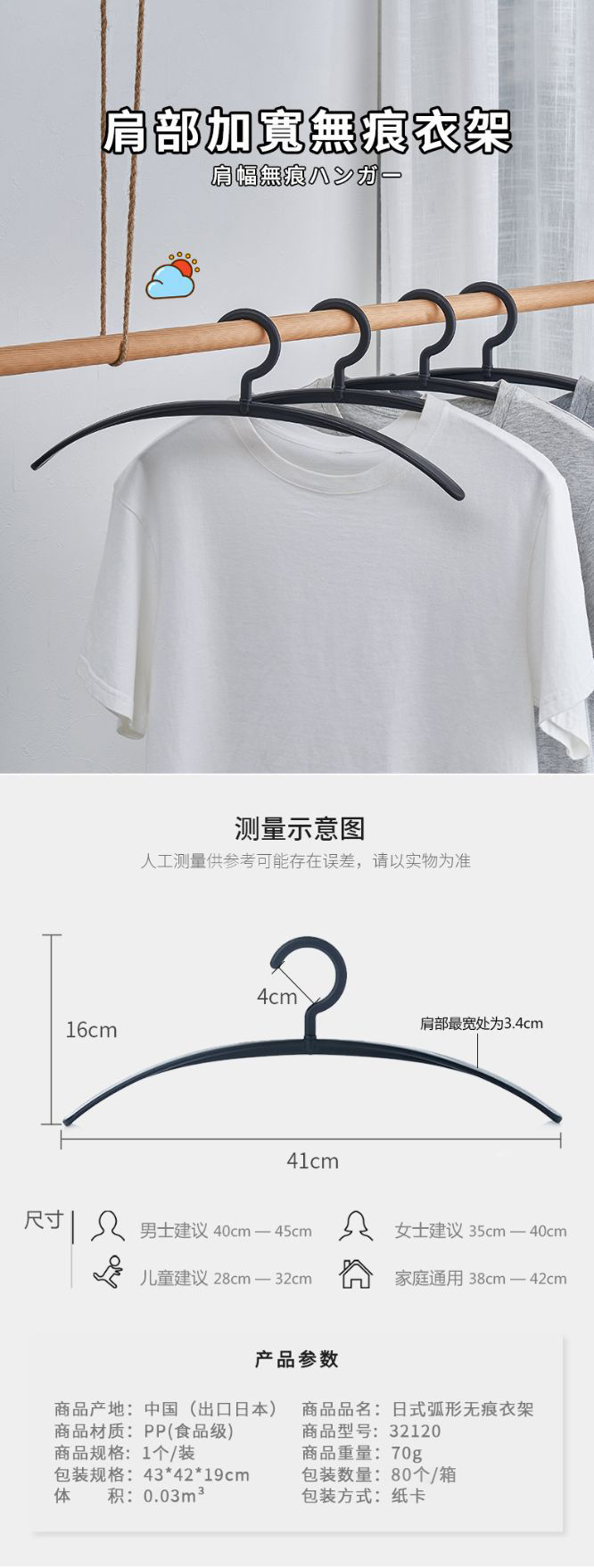 HSBC Xinjia 41cm 원활한 곡선 미끄럼 방지 넓은 어깨 두꺼운 성인 셔츠 플라스틱 옷걸이 옷 걸이 특별 제공스토어 가기