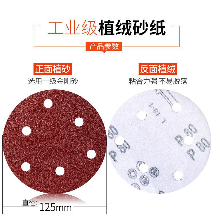 125mm 솔질 5 인치 6 홀 백 벨벳 디스크 사포 공기 연삭 몰입 사포 자체 접착 사포 디스크 모래 공장