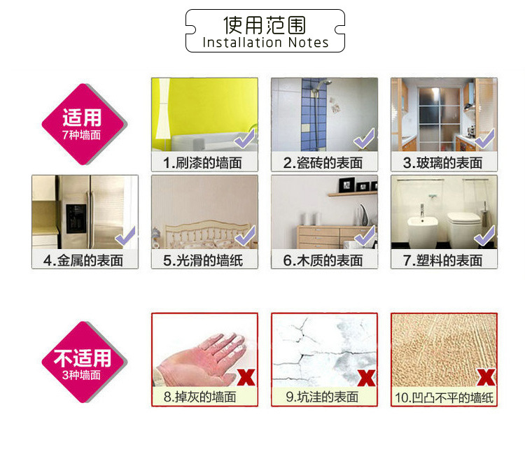 3、若粘贴的墙面受潮、老化或刚刷了新漆,粘贴后可能会引起墙贴自动脱落,或者会引起墙面剥落,可以用吹风机热风将墙面吹干或待漆面挥发一段时间后再贴,但效果可能会有所出入,所以敬请广大顾客慎选所贴位置;