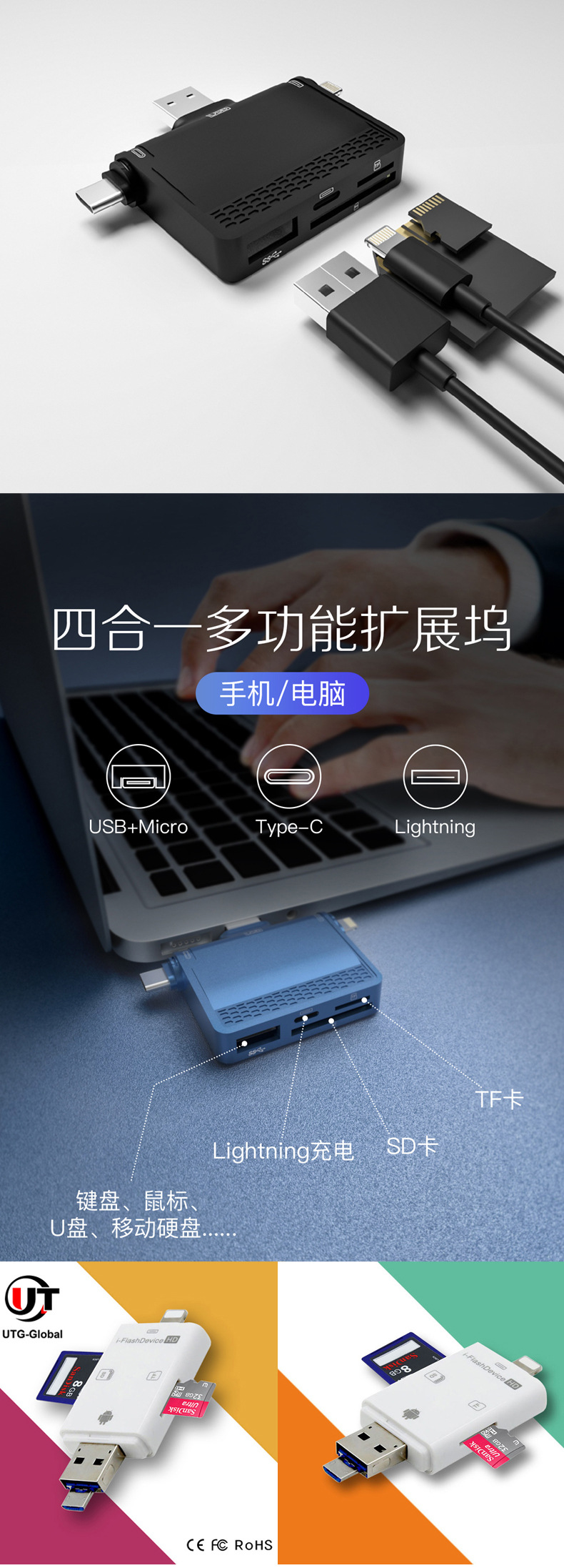 Apple 카드 리더용 4 대 1 다기능 카드 리더기 메모리 카드 해외 통상 고속 휴대 전화 카드 리더기스토어 가기