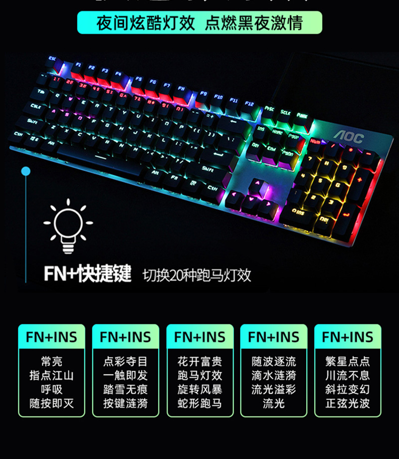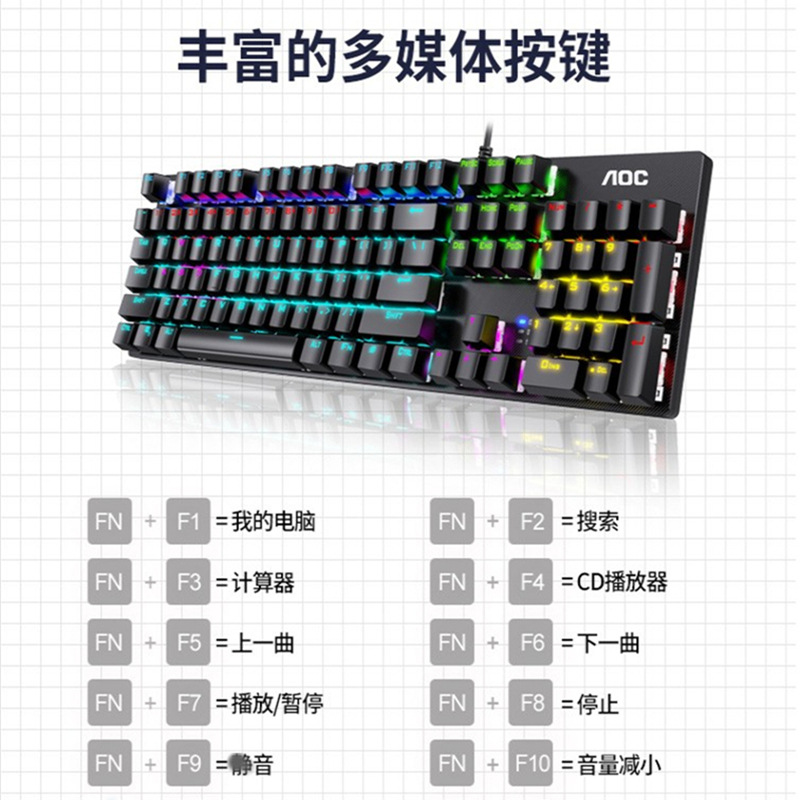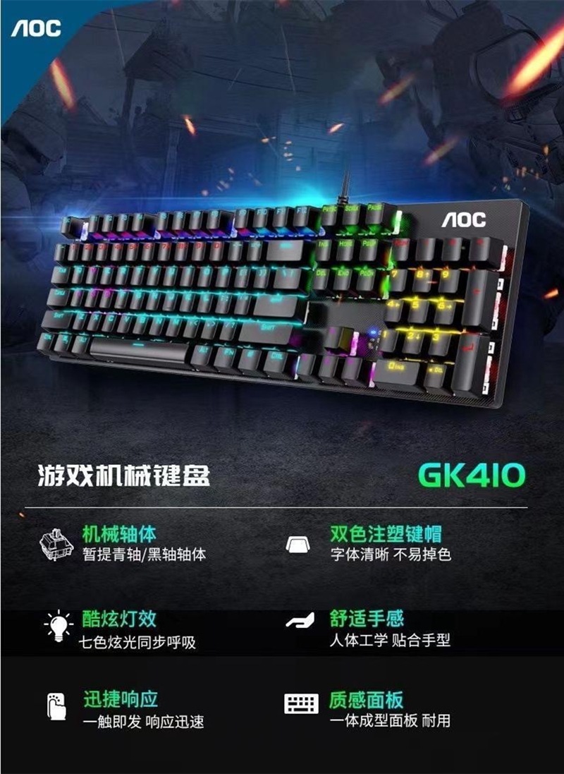 도매 AOC GK410 e스포츠 그린축 진정한 기계식 키보드 다중 모드 발광 게임 비즈니스 USB 유선스토어 가기