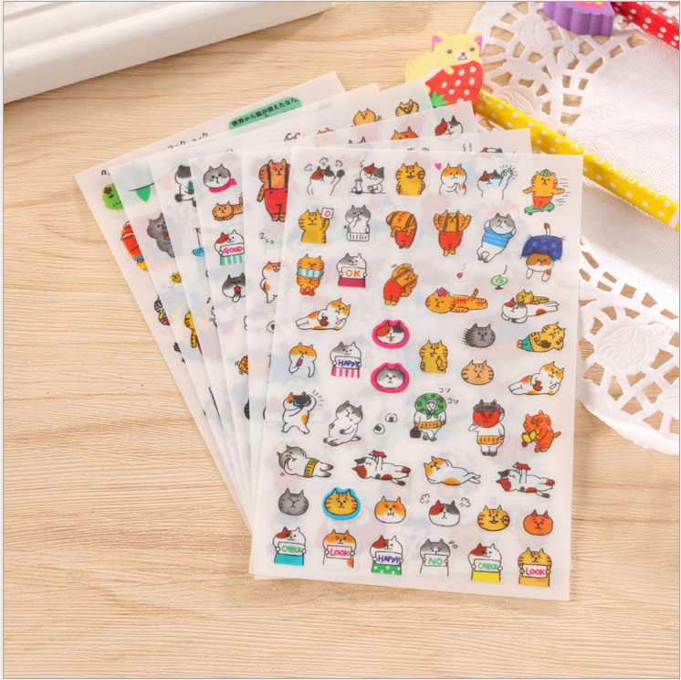 재고 스티커 창조적 인 DIY 투명 PVC 장식 저널 일기 표현 스티커 도매 절묘한 귀여운 만화 고양이