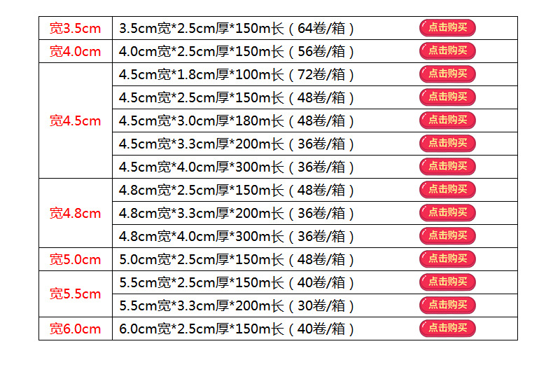多种宽度150米胶带   点击