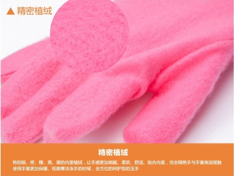 产品特点:棉绒里家用手套是对现有家用手套的结构进行改进,添加保暖内层的新型棉绒里。它具有拉伸强度,手感柔韧,经久耐用。内层是绒布,冬季保暖,夏天吸湿通气,穿戴舒适。防水性,防酸,防碱,防油,保暖的多重优点。广泛适用于多种工作环境,是冬天替代普通家用手套的理想选择。