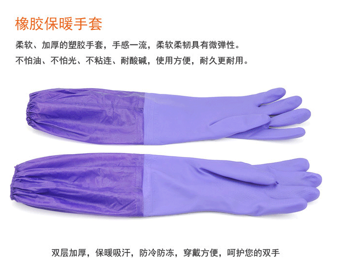 pu接袖加绒加长手套,比一般乳胶手套更耐用