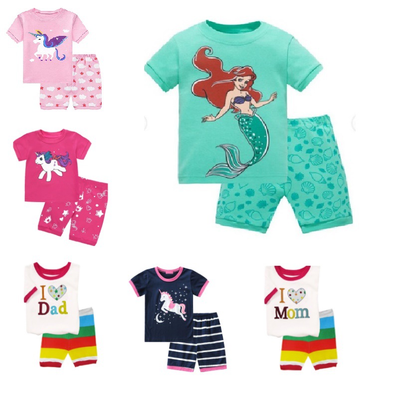 여자 반팔 인어 가정 의류 어린이 의류 봄 여름 세트 에어컨 의류 만화 잠옷 K153스토어 가기