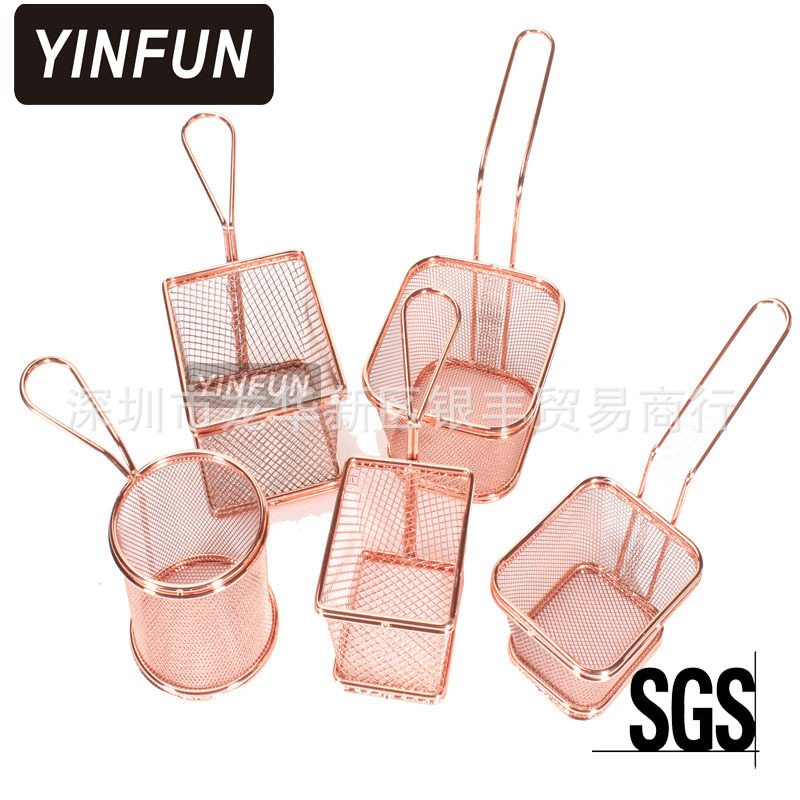 감자 튀김 바구니 황금 미니 작은 튀김 바구니 스낵 랙 304 스테인레스 스틸 튀김 바구니 프라이 그물 상업 장식