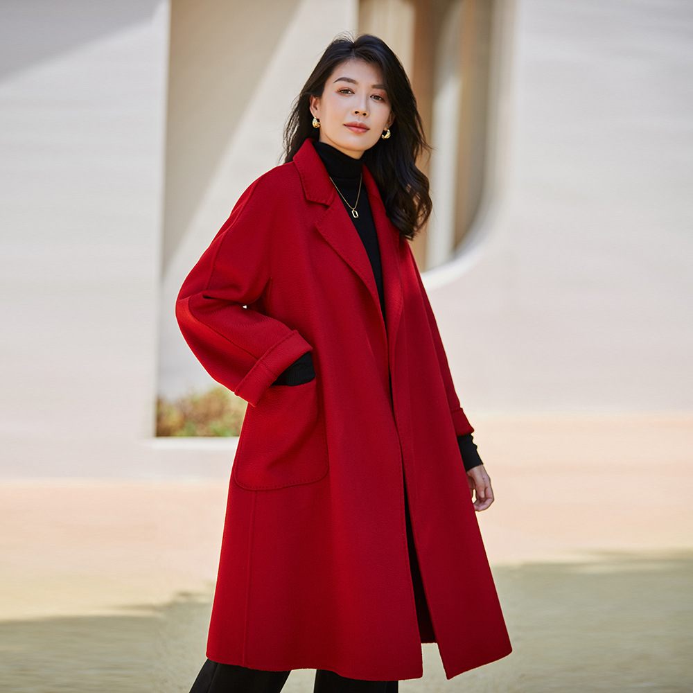 水波纹面料光感十足,垂感好含羊绒6.9%